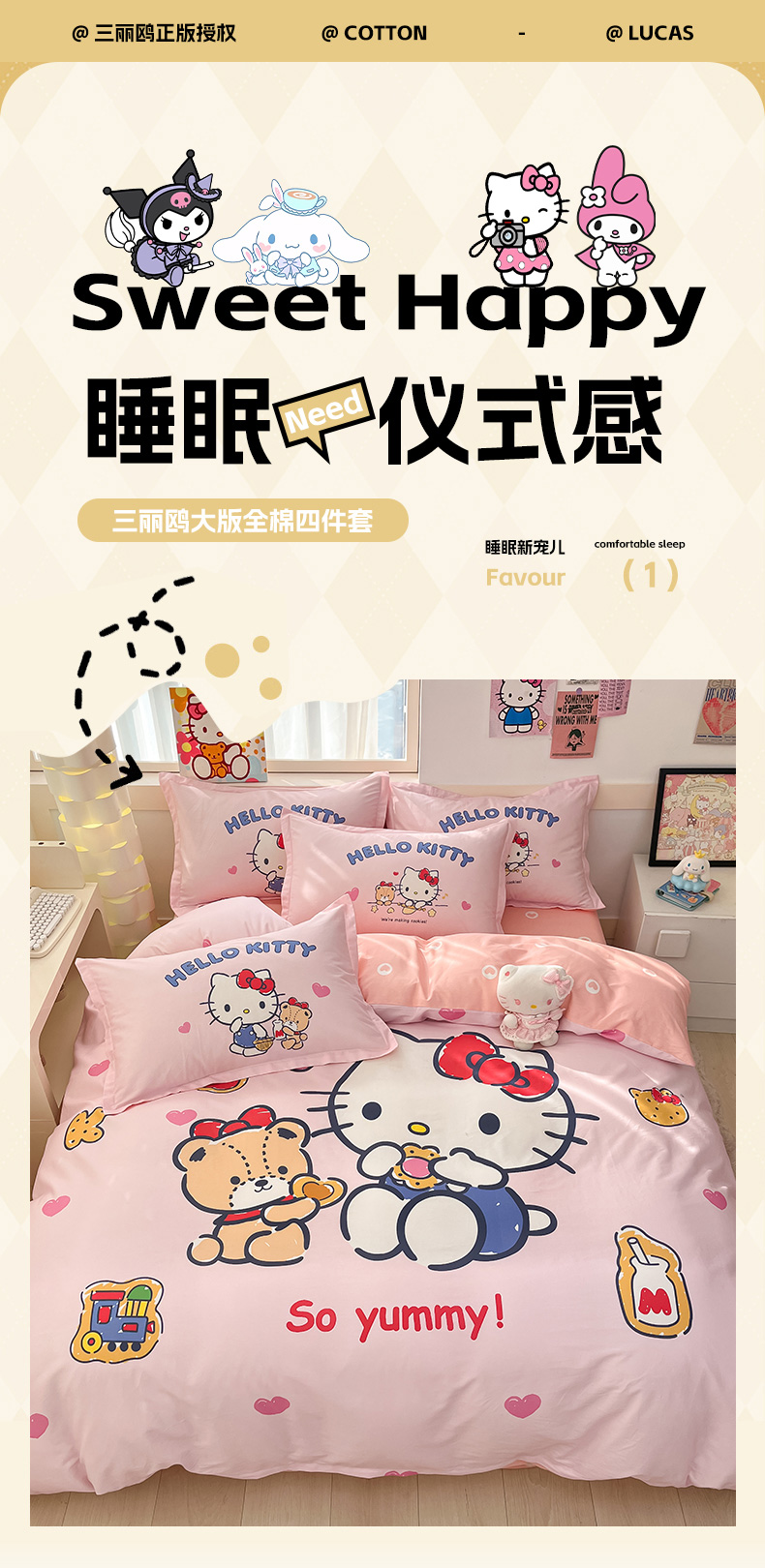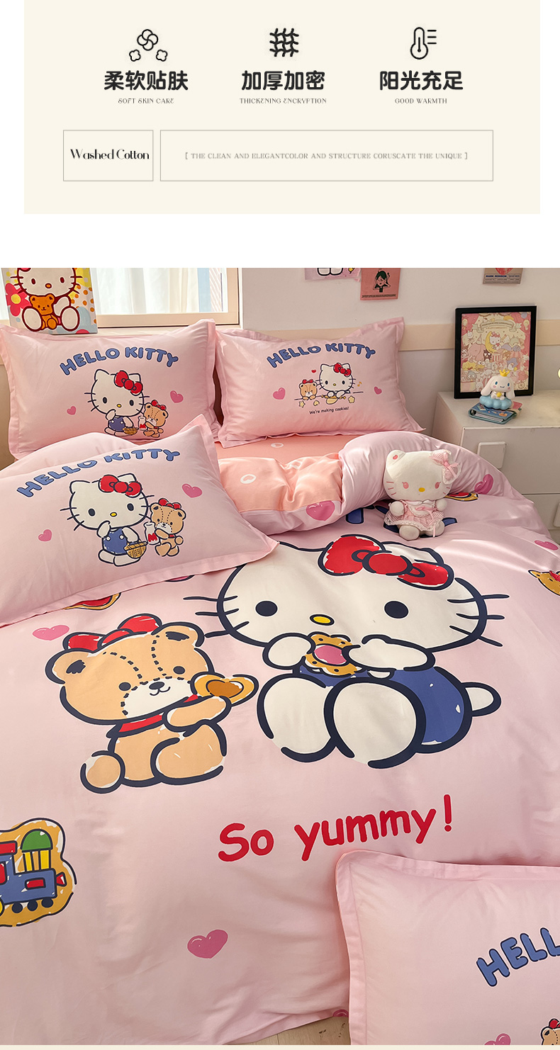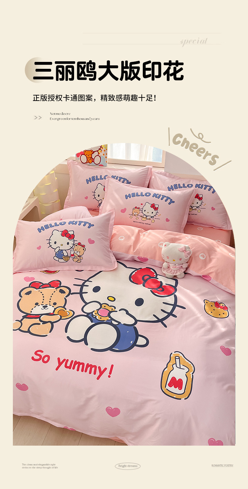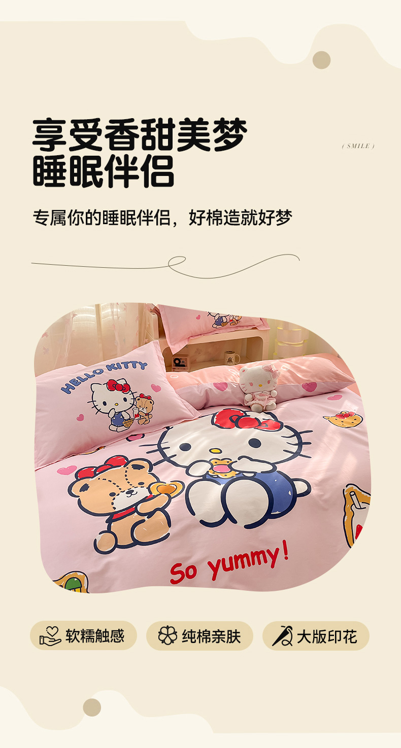 当前位置: 91家纺网 > 商品网购 > 床品套件 > 四件套 > 全棉普通四件套 > 博雅 2025新款三丽鸥大版印花全棉四件套专版花型 全棉大版(升级款信封枕)小熊KT猫