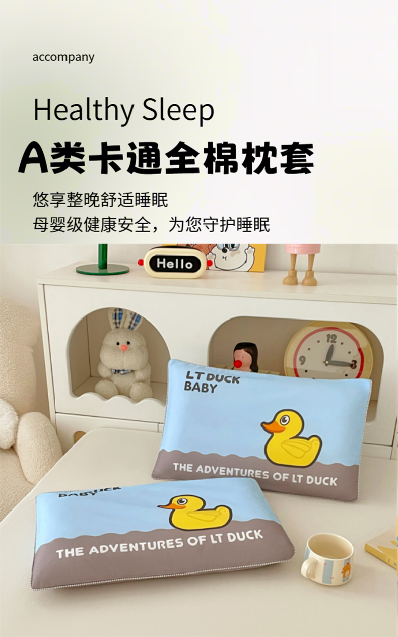 • 91家纺网 家纺一手货源 找家纺 圣比熊 2025新款正版授权控价19元起 全棉枕套卡通枕芯套枕头内胆套儿童抱枕套 漂流鸭