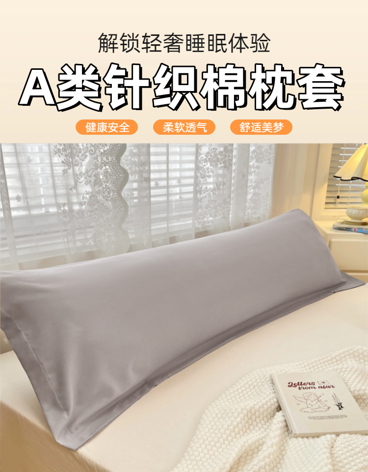 商品名称:圣比熊 2025新款针织棉双层纱枕头套亲肤双人枕套枕芯套枕头内胆套 浅灰