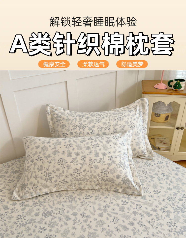 商品名称:圣比熊 2025新款针织棉双层纱枕头套双人枕套枕芯套宿舍单人枕头内胆套 镜花水月