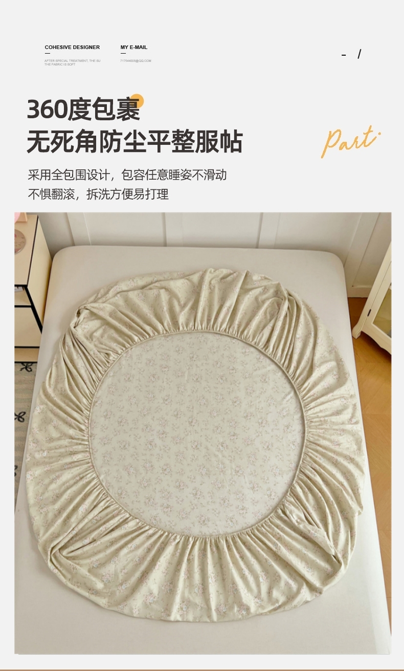 • 91家纺网 家纺一手货源 找家纺 圣比熊 2025新款针织棉双层纱床笠罩全包席梦思床垫保护罩 花开半夏