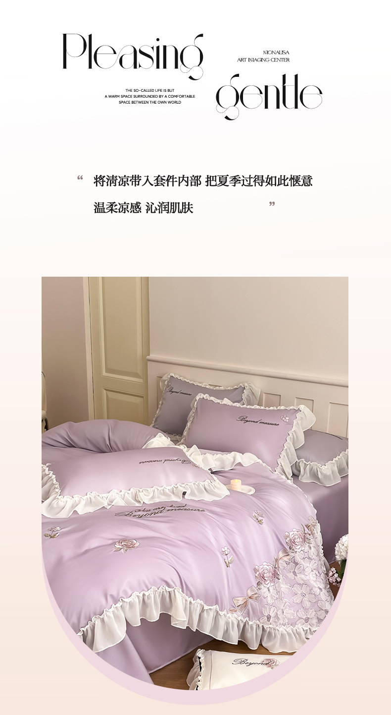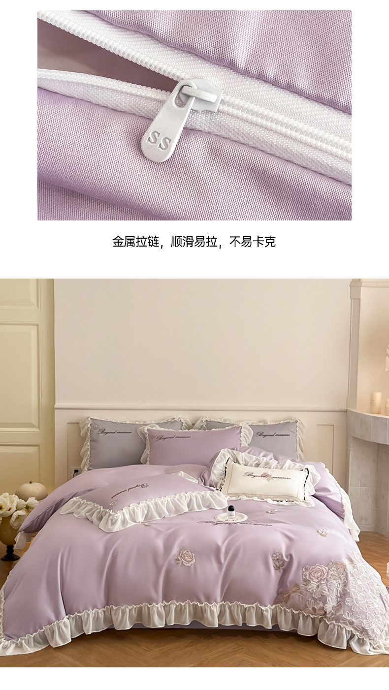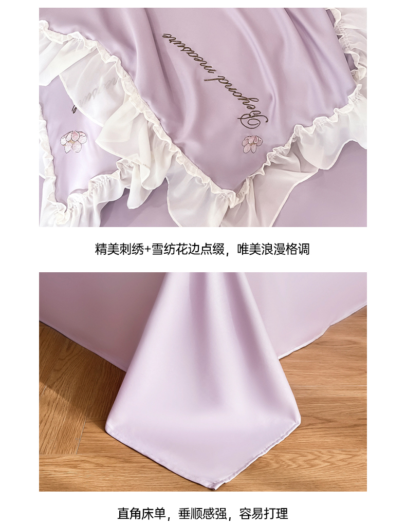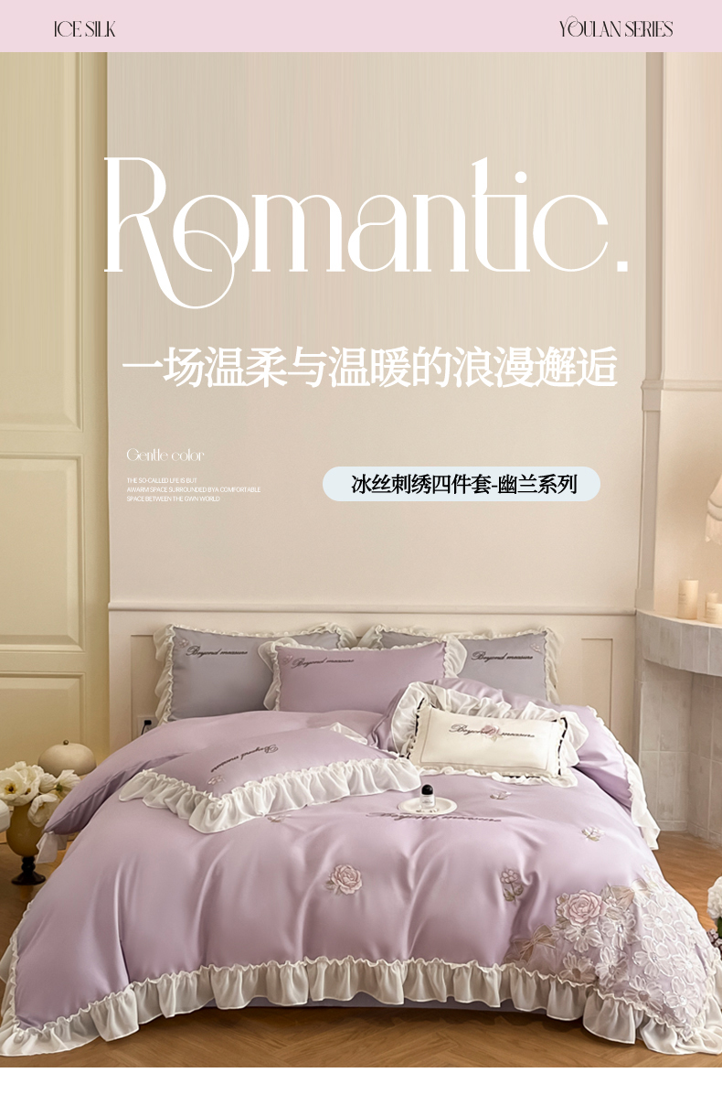 商品名称:七七家纺 2025新款冰丝刺绣款四件套幽兰系列 幽兰紫