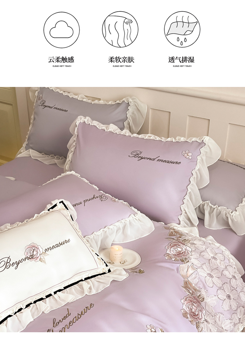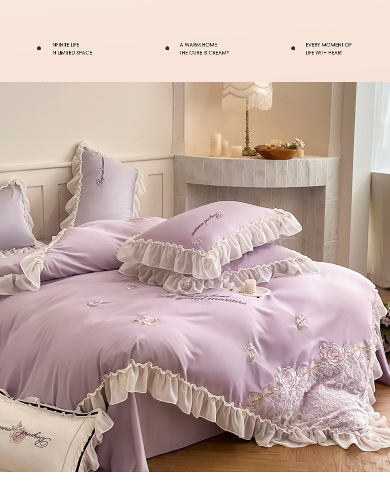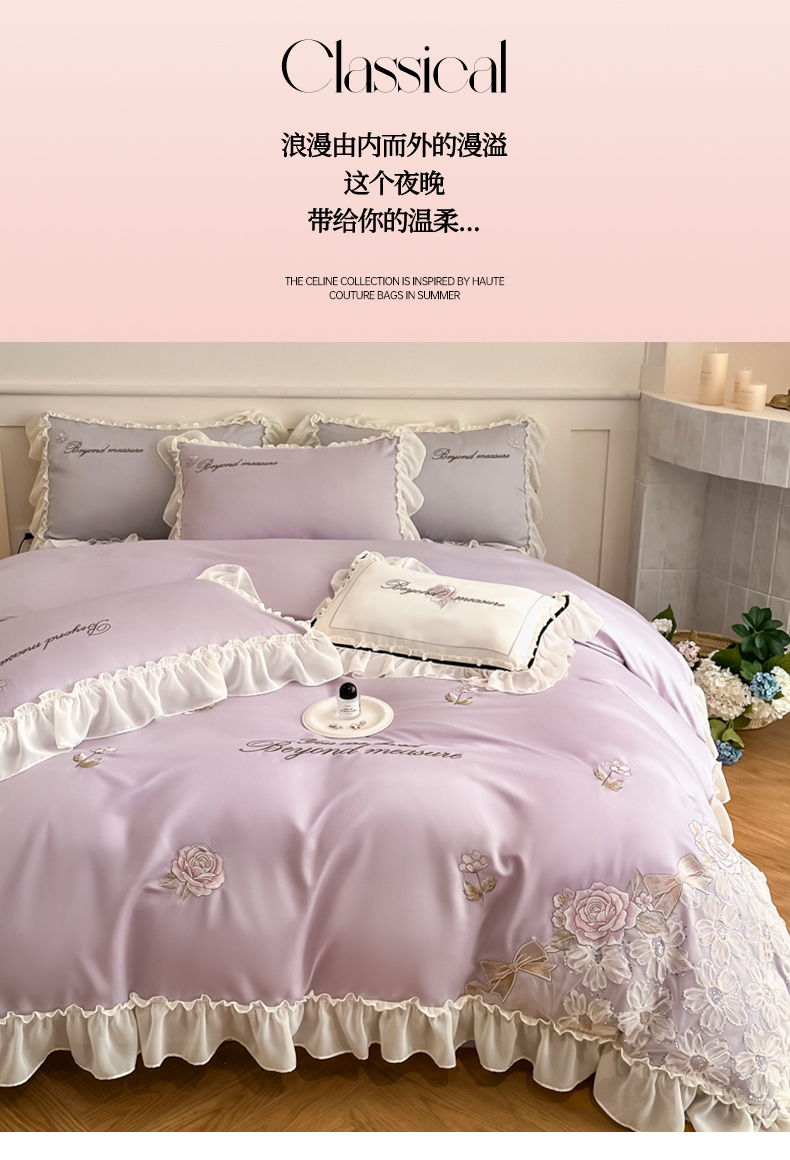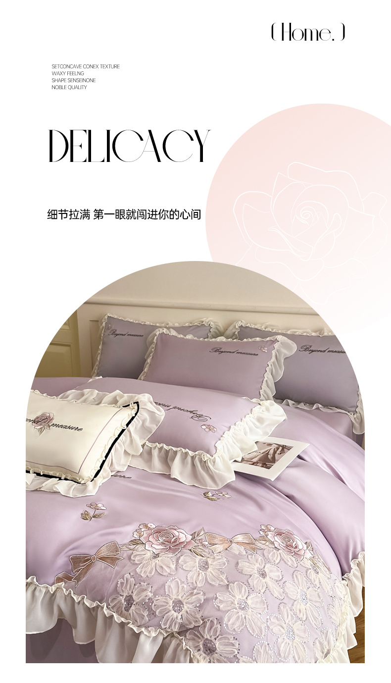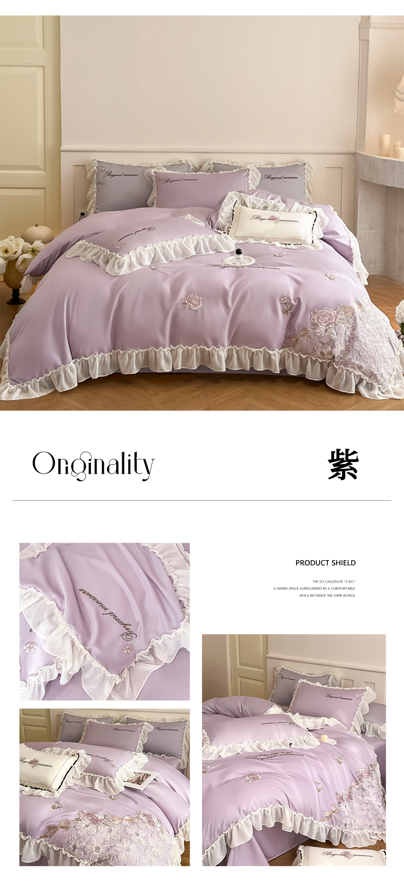 商品名称:七七家纺 2025新款冰丝刺绣款四件套幽兰系列 幽兰紫