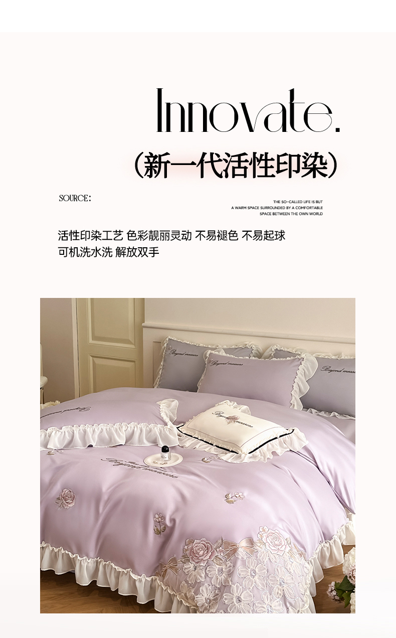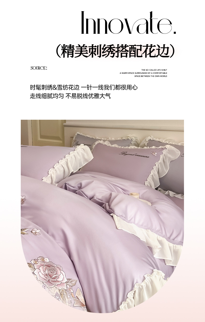 (总)七七家纺 2025新款水洗棉刺绣四件套梦见系列,梦见豆沙,梦见粉,梦见黄,梦见蓝,梦见紫