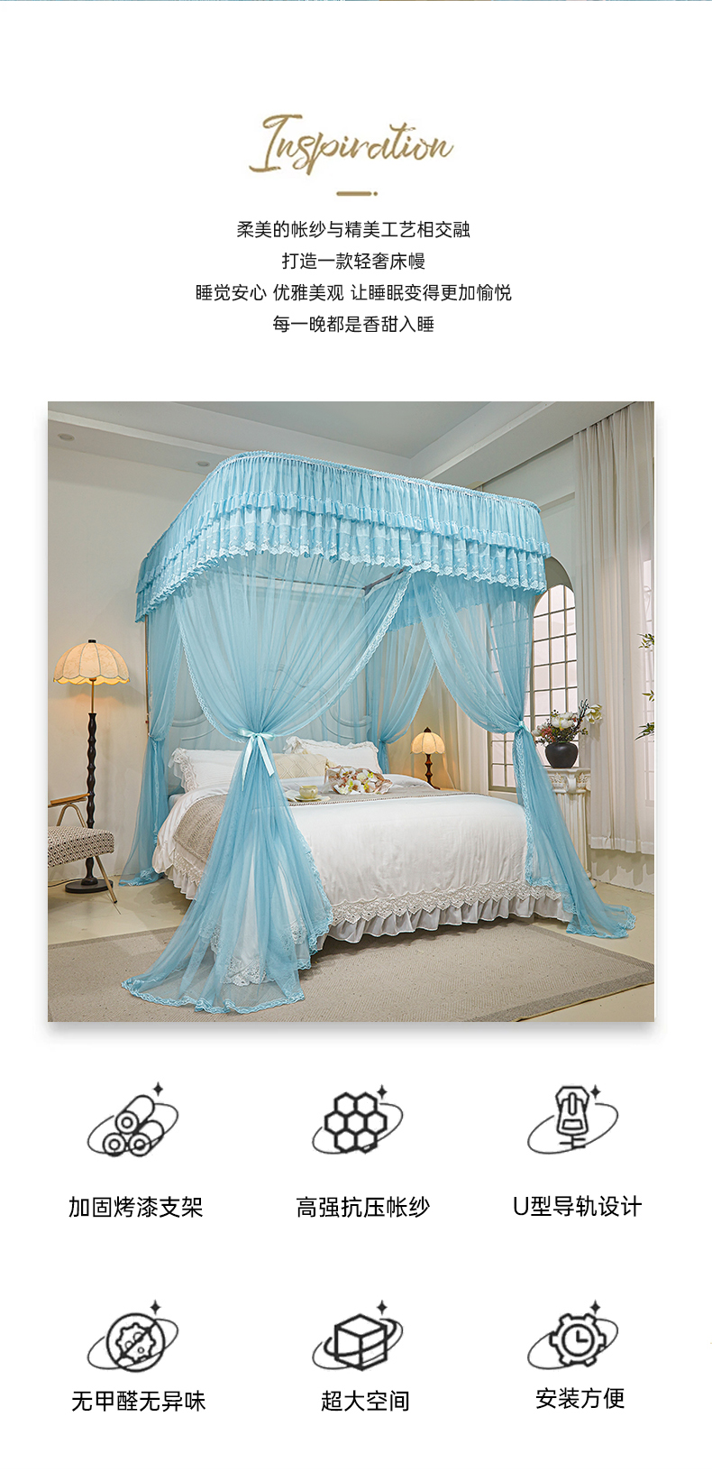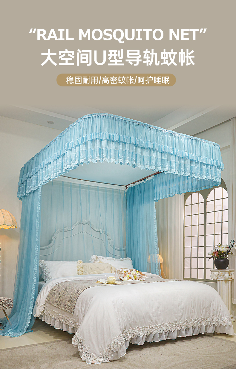 商品名称:梦尔佳蚊帐2025新款U型导轨蚊帐-861荣华富贵系列 天空蓝