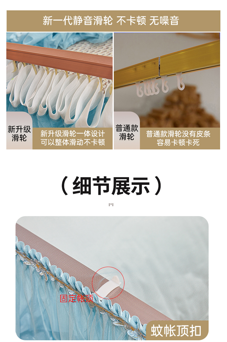 (总)梦尔佳蚊帐2025新款U型导轨蚊帐-861荣华富贵系列,宛如玉,婚纱白,天空蓝,温柔黄,喜庆粉