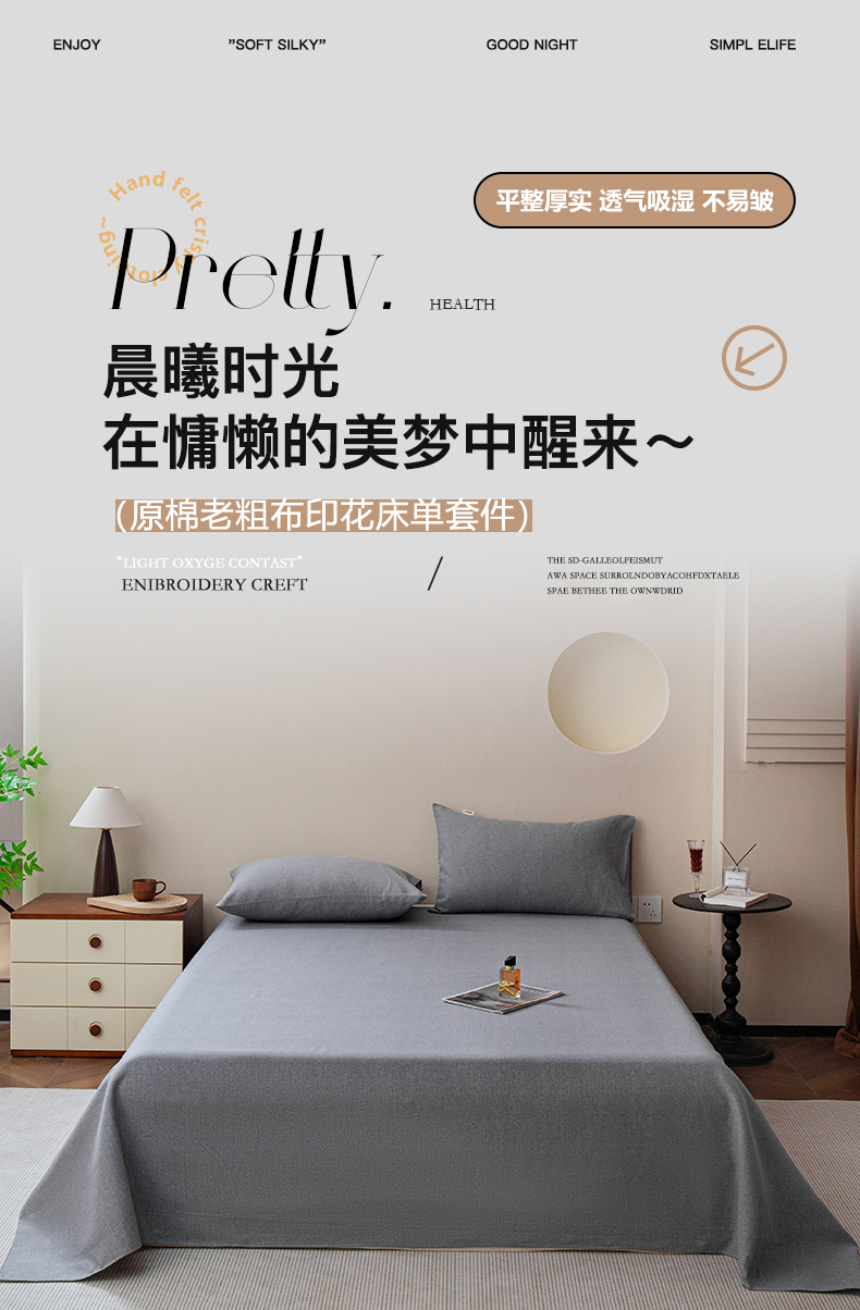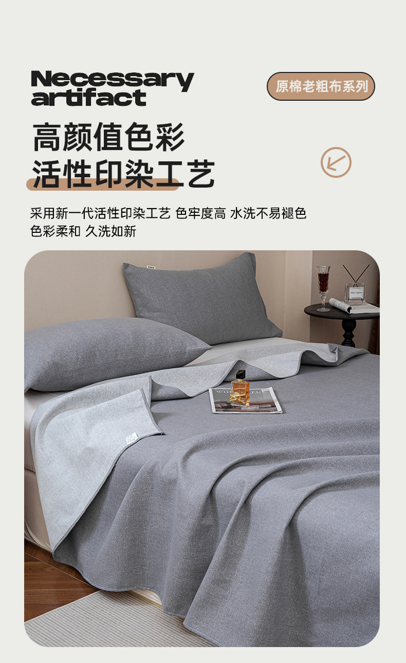 邵依家纺 2025新款原棉老粗布印花床单系列 梦境-灰