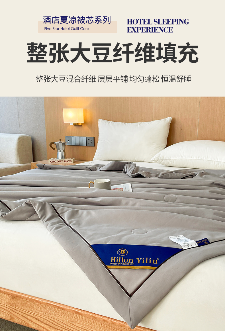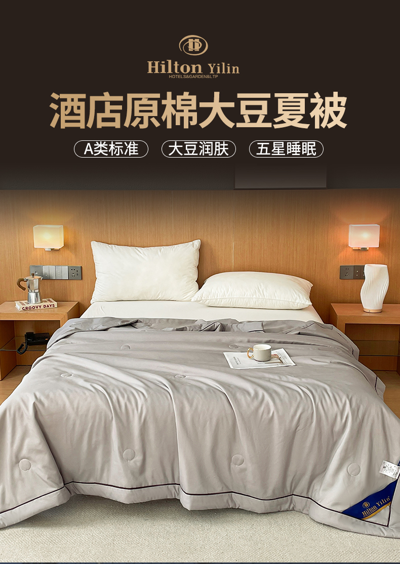 招财星家纺 2025新款希尔顿酒店款大豆被夏被空调被夏凉被 星灰