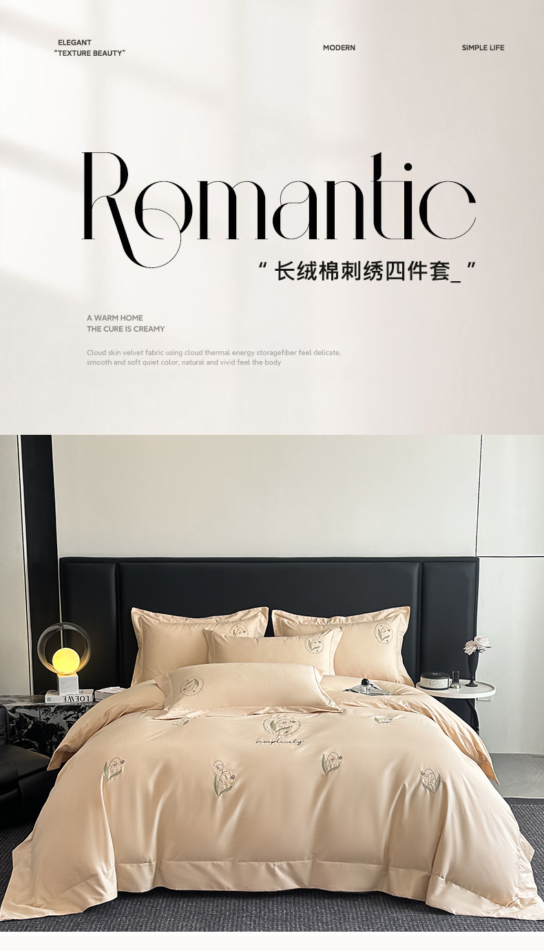 新方向 2025新款全棉长绒棉刺绣四件套-铃兰物语 铃兰物语-香槟