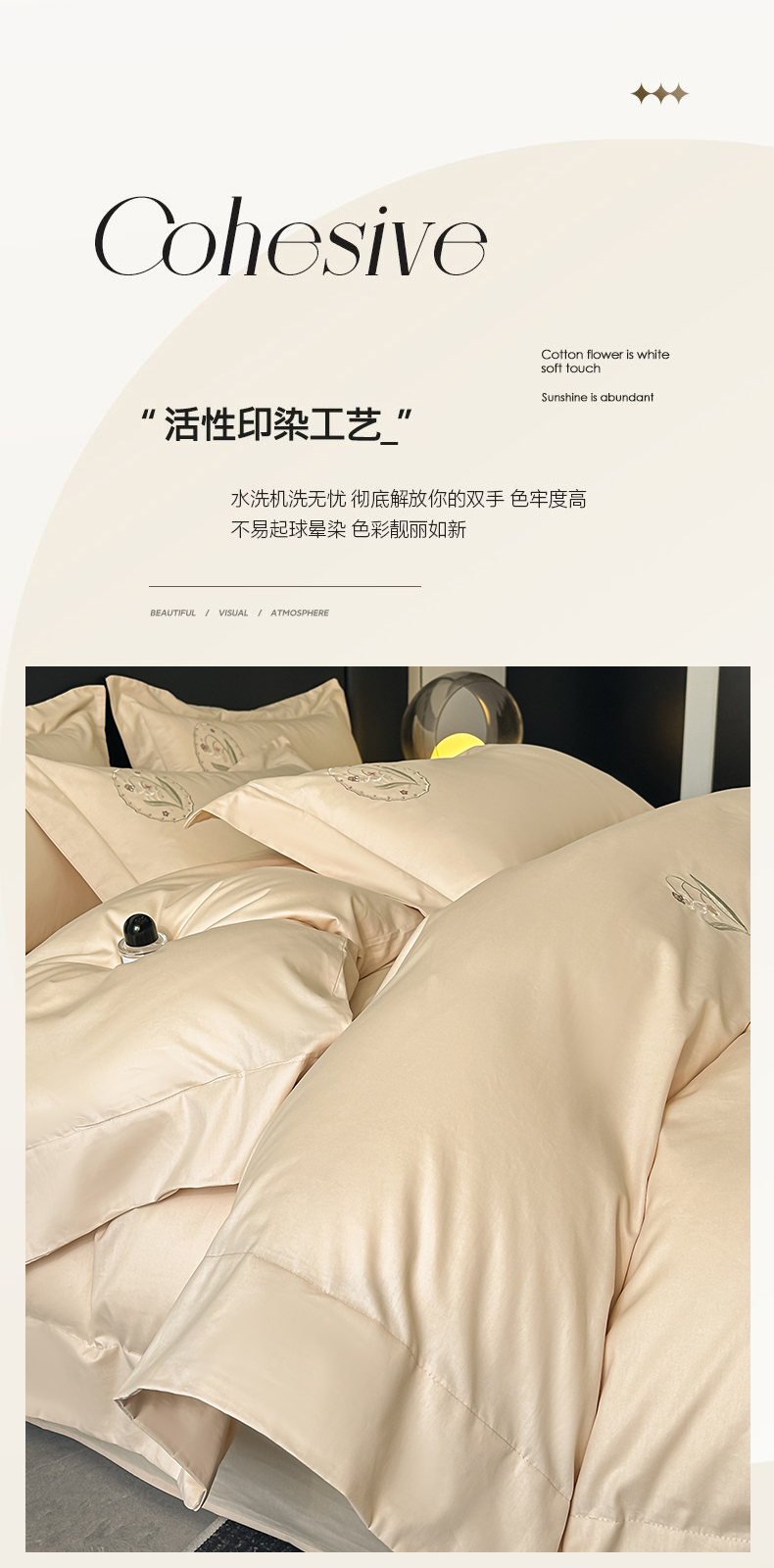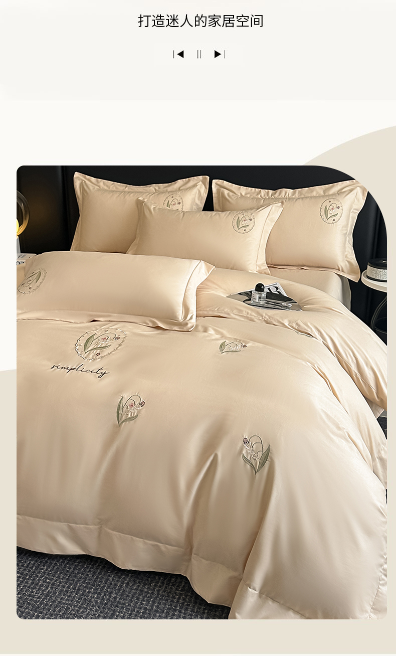 商品名称:新方向 2025新款全棉长绒棉刺绣四件套-铃兰物语 铃兰物语-香槟