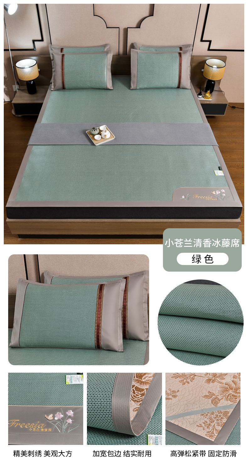 (总)小牛席业2023新款小苍兰清香冰藤席系列凉席竹席冰丝席乳胶席,黑咖,金色,绿色,浅蓝,香槟,银灰