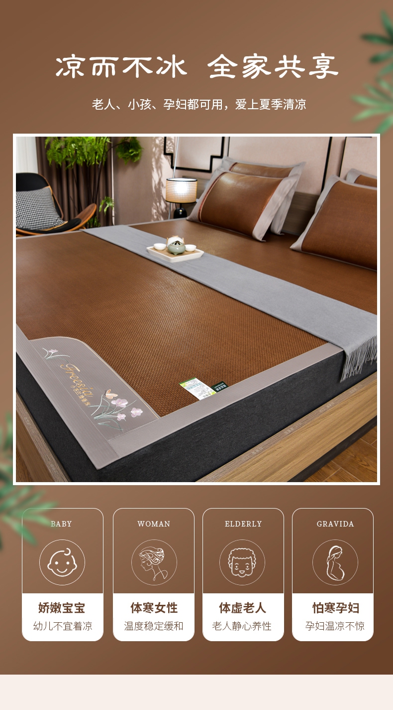 2023新款夏日冰点-冰藤双面席凉席藤席竹席冰丝席乳胶席,咖色,蓝色,绿色,香槟