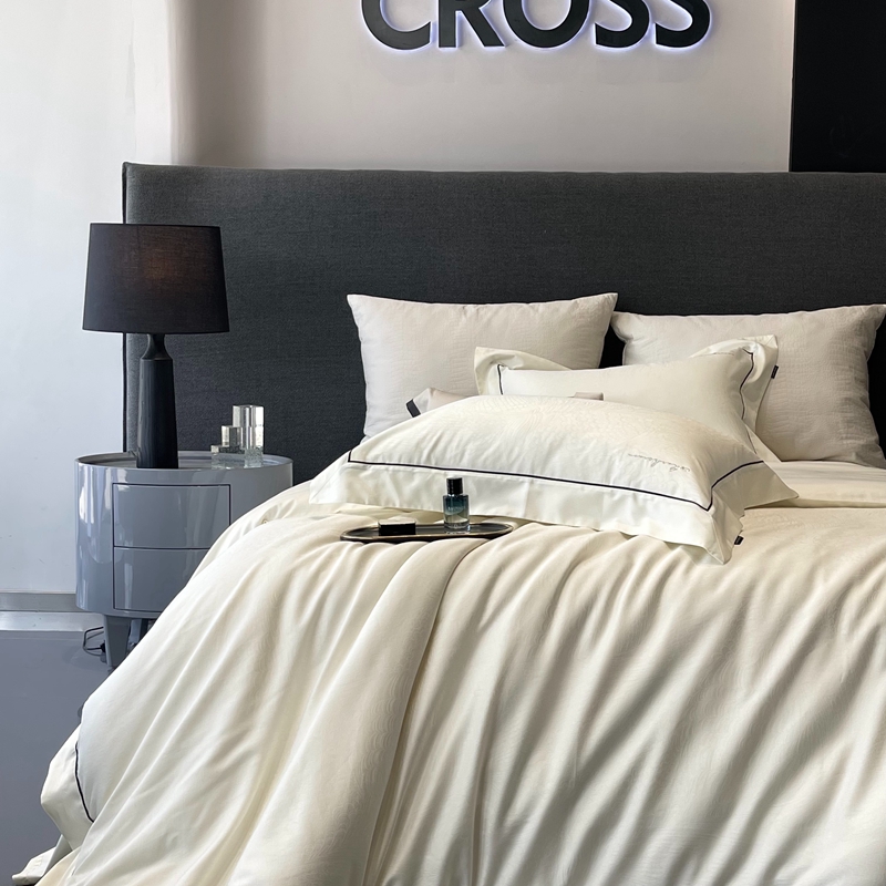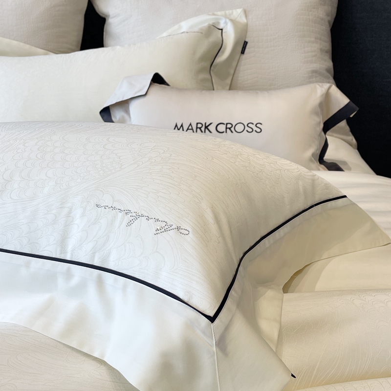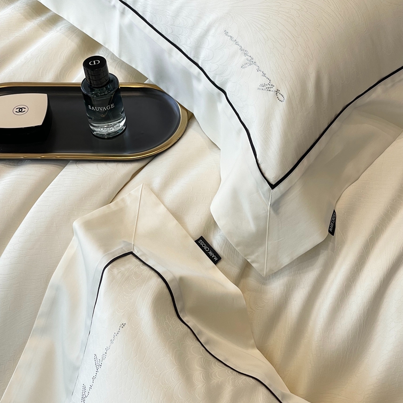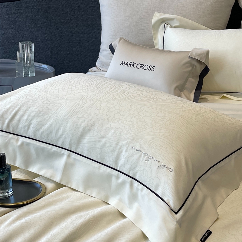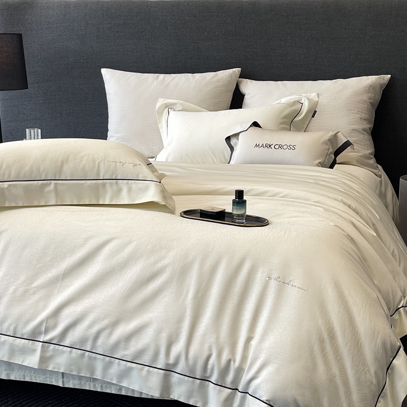 佳汐蓝家纺 2025新款淡雅知性暗纹提花全棉四件套黄金棉-染色提花系列 锡兰风华-雪梨白