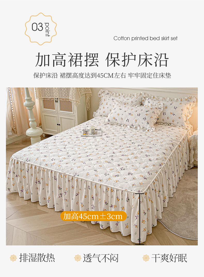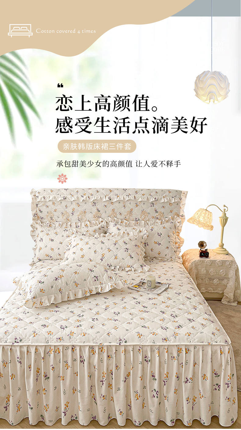 (总)十个点家纺 2025新款加厚磨毛木棉床裙三件套-绫罗系列,爱意萌萌,贝贝熊,格桑花,海棠花,蝴蝶兔,花千骨,米兰,木棉花,山茶花,同心结,心相印,心愿-米