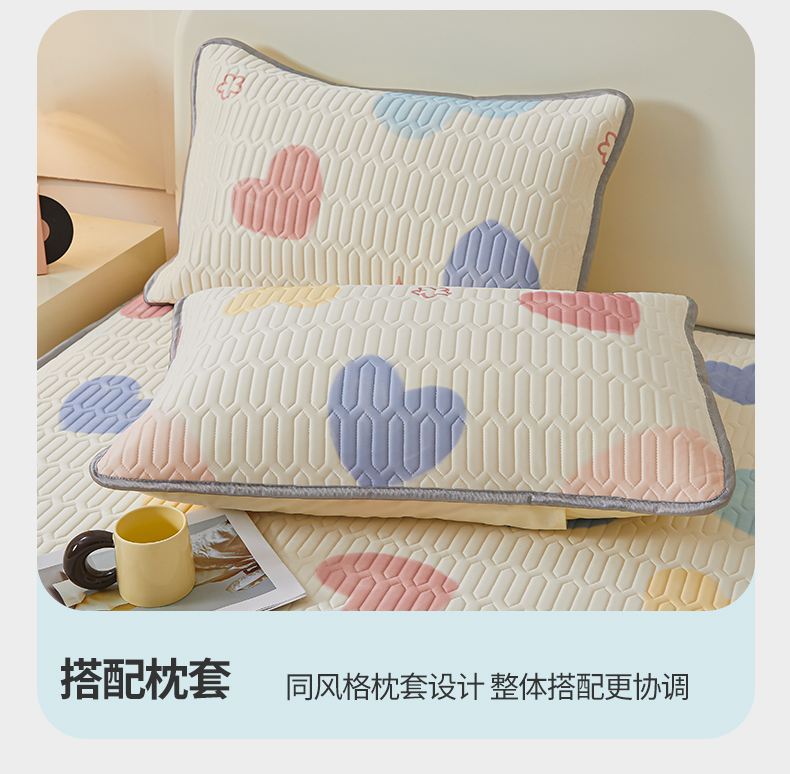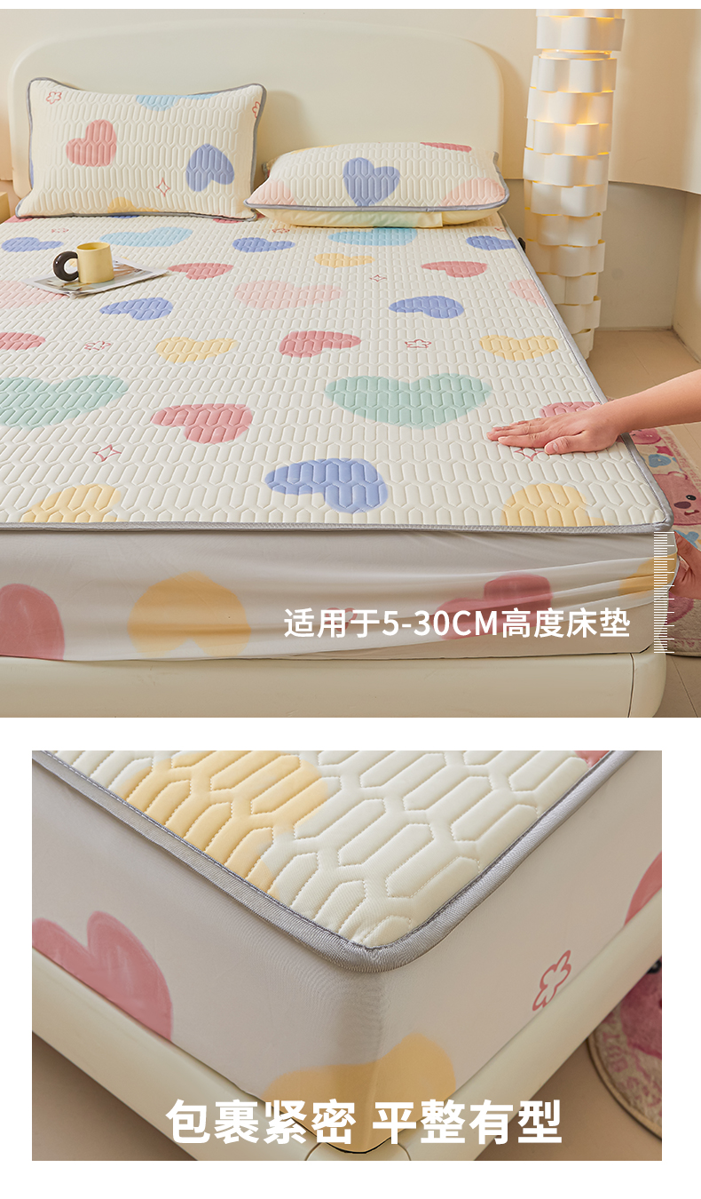 (总)伊人坊 2025新款A类水洗棉六面全包棉花夹棉床笠,爱心粉,爱心灰,爱心咖色,爱心米白,五星粉,五星灰,五星咖色,五星米白