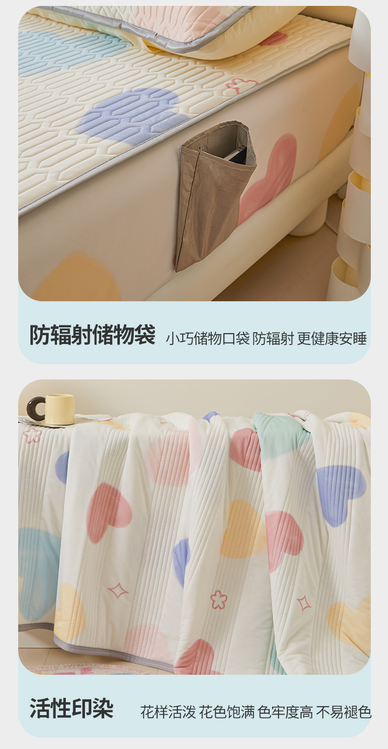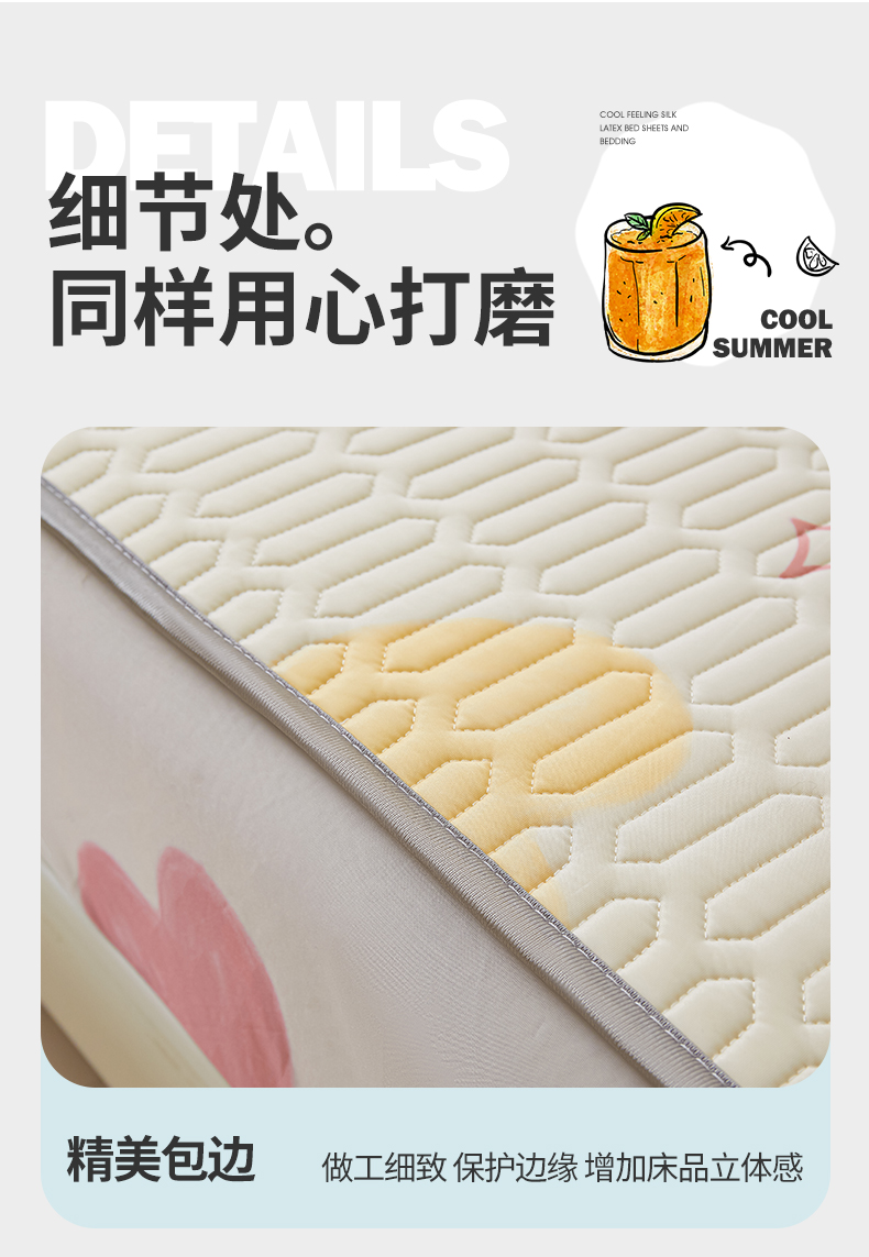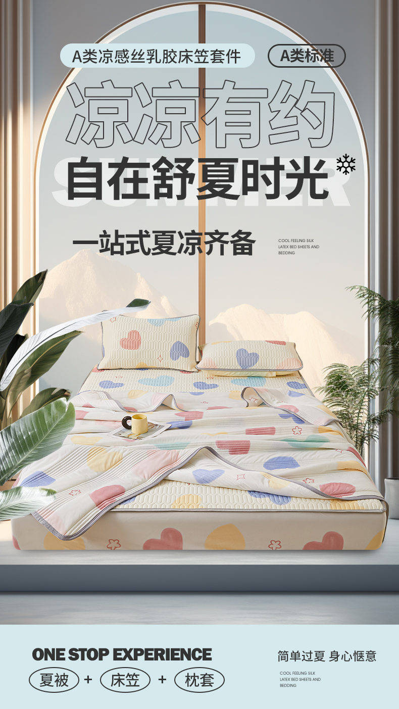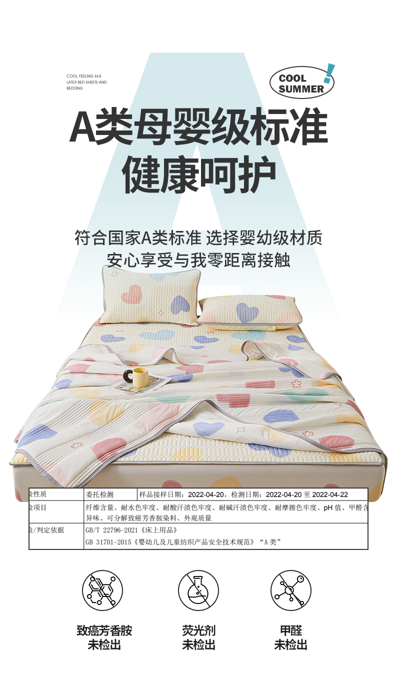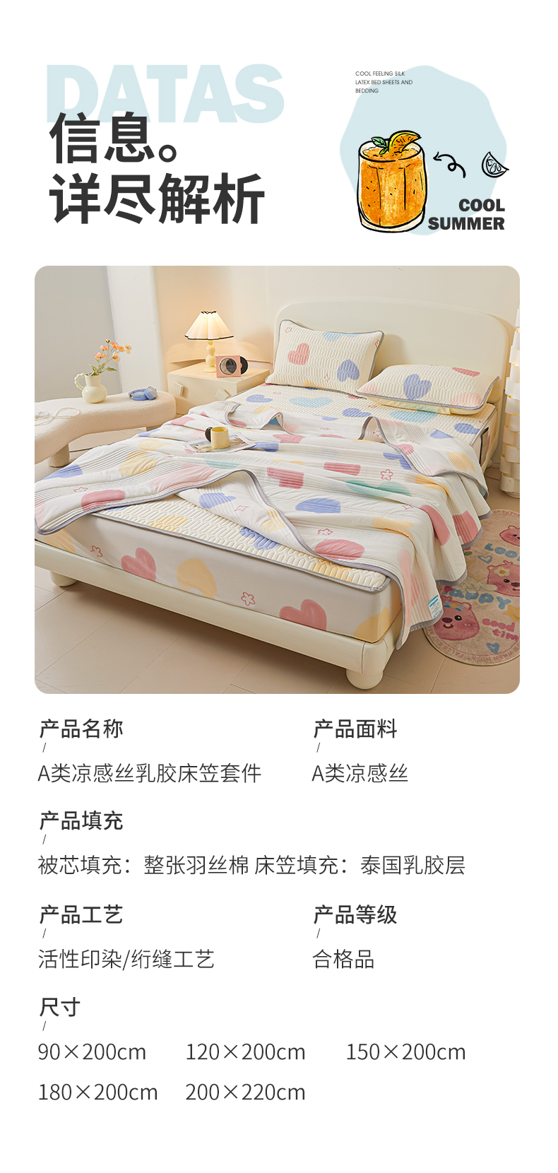 商品名称:伊人坊 2025新款A类凉感丝乳胶床笠凉席三件套 心欢喜