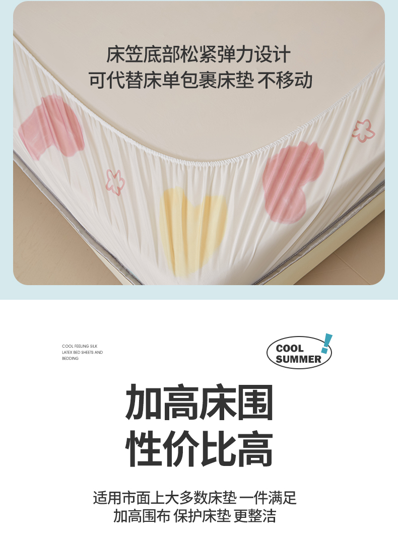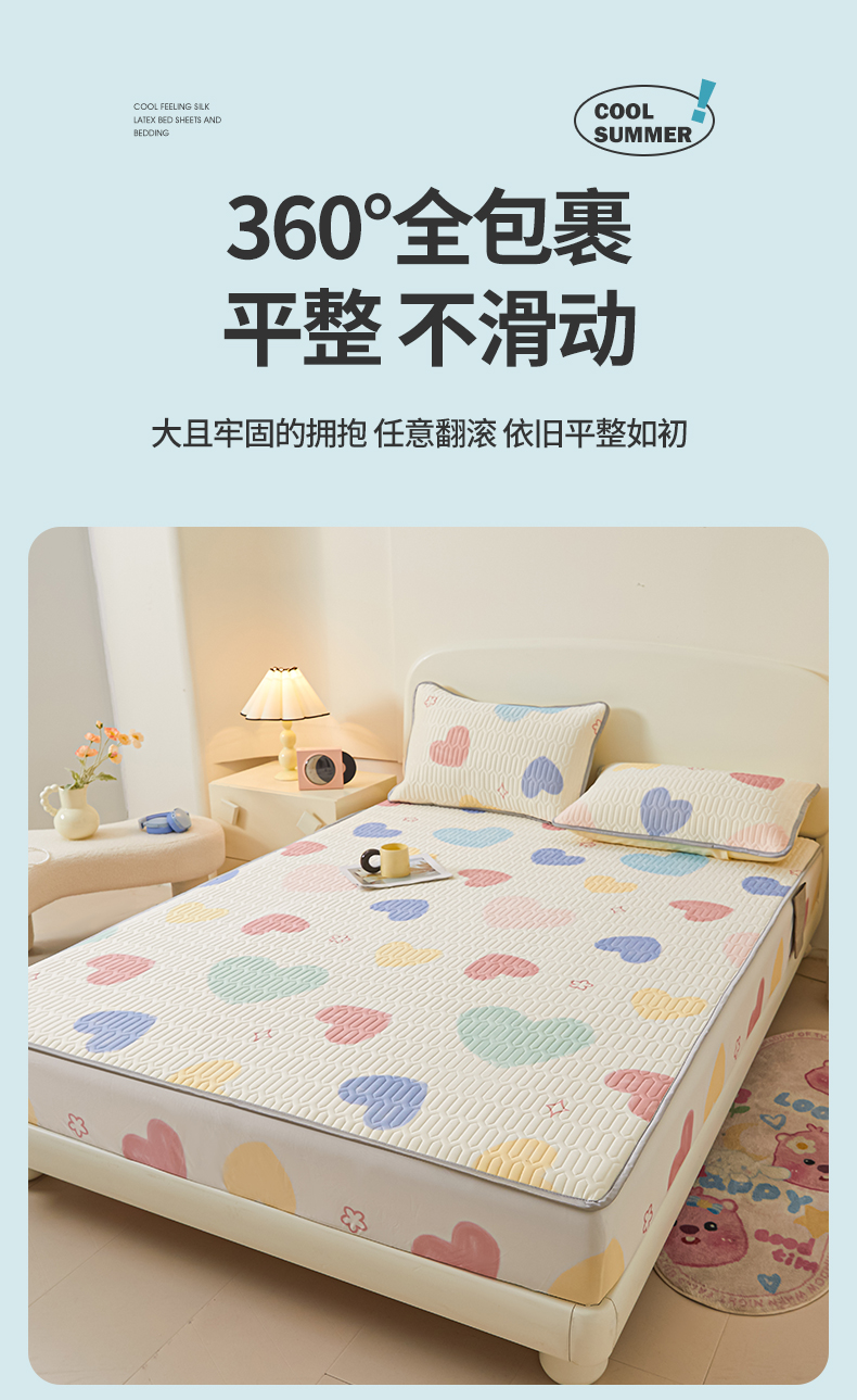 伊人坊 2025新款A类凉感丝乳胶床笠凉席三件套 心欢喜