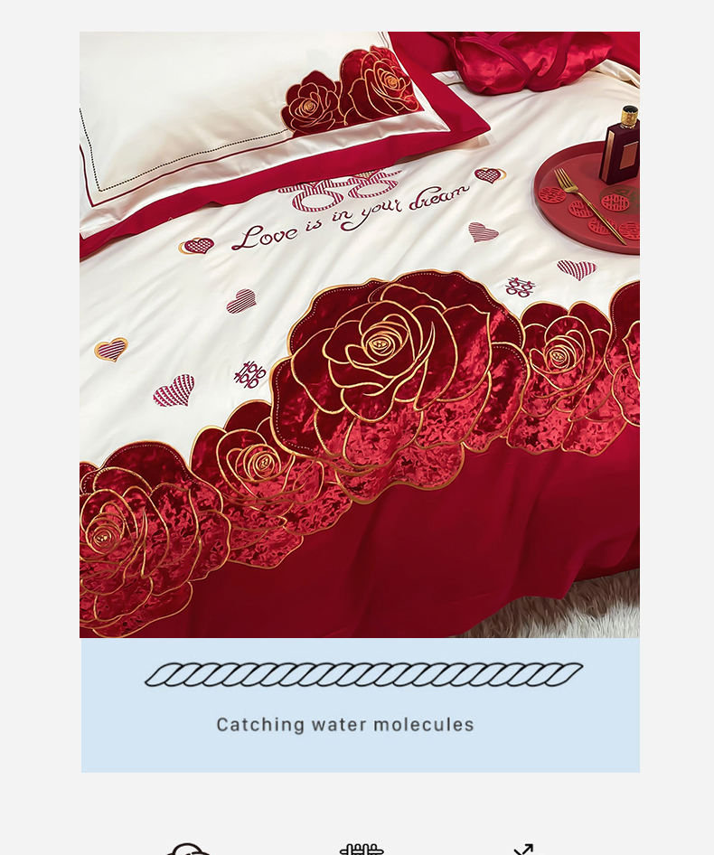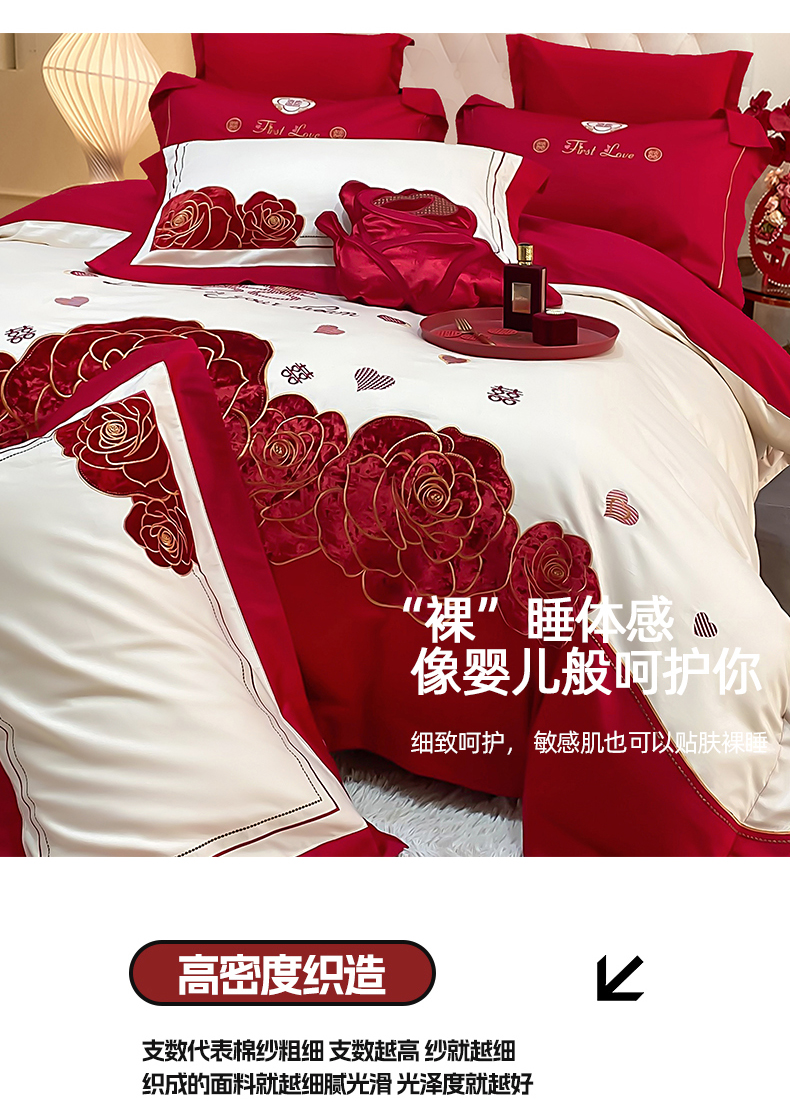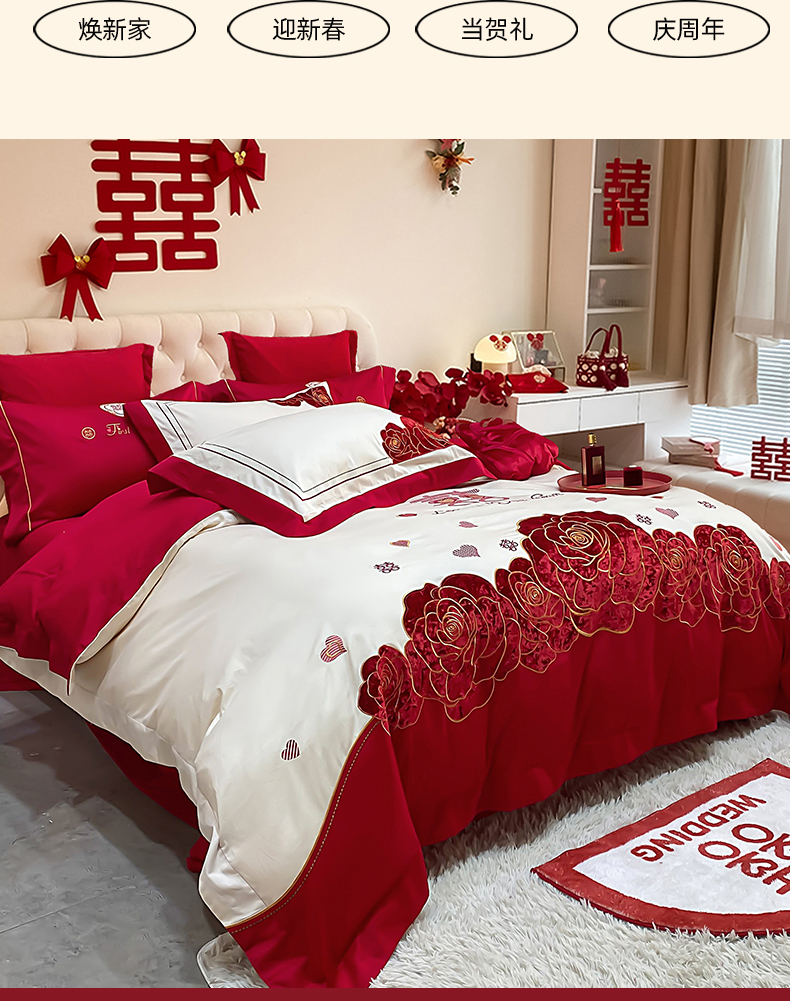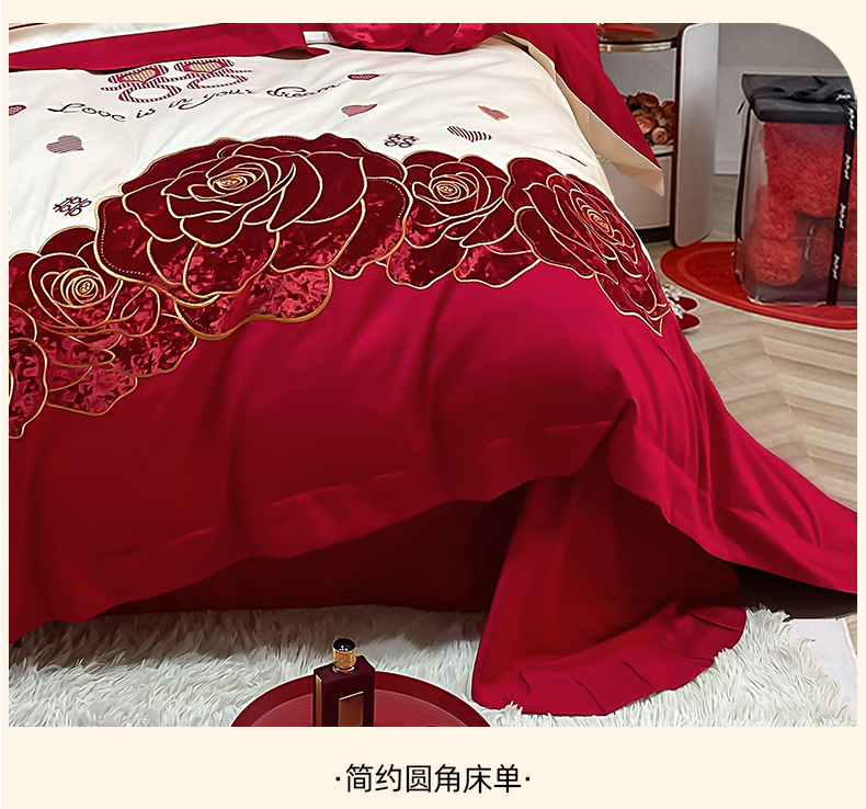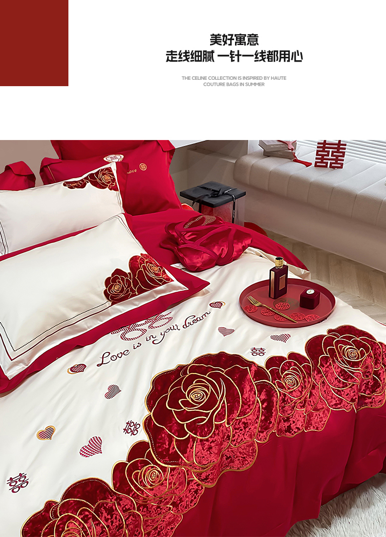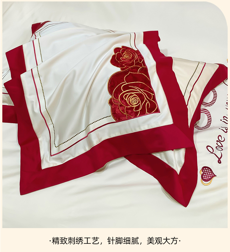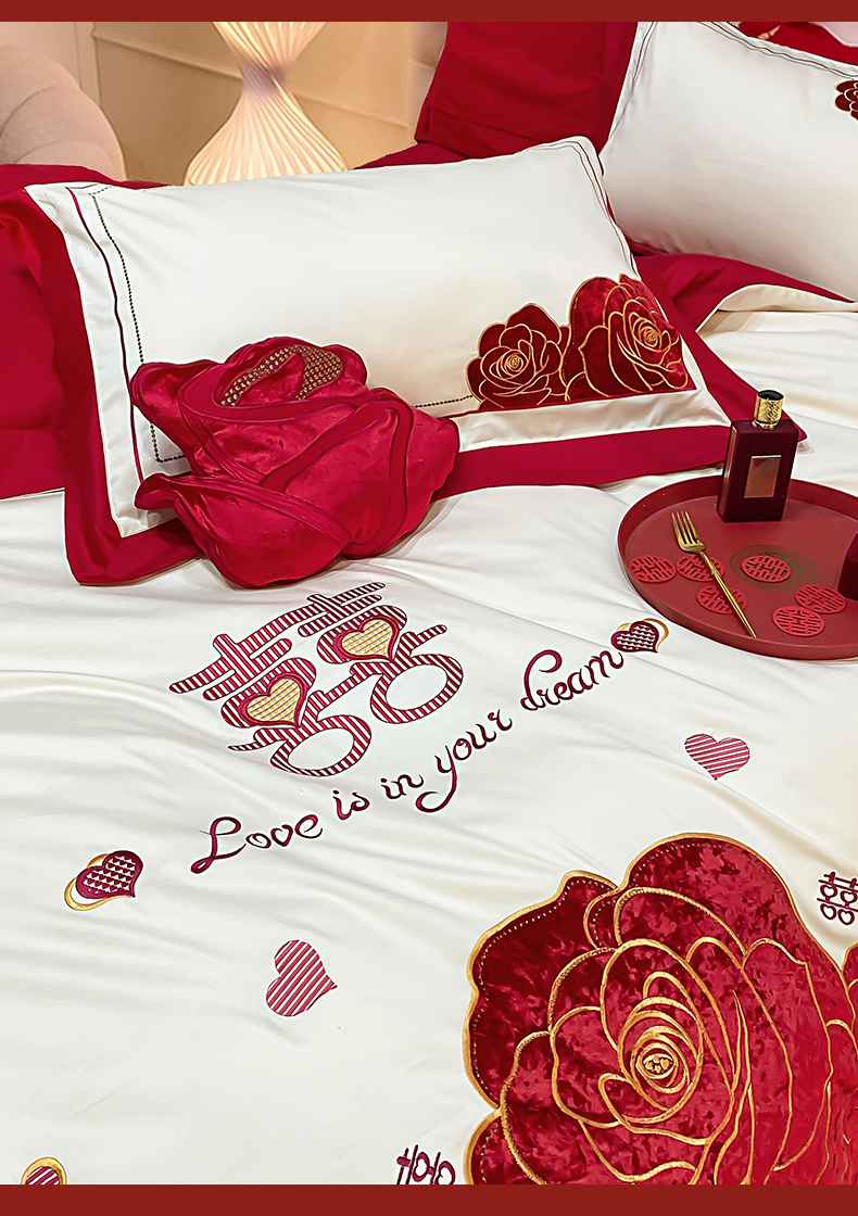 当前位置: 91家纺网 > 商品网购 > 床品套件 > 四件套 > 婚庆四件套 > 千禧家纺 2025新款双面长绒棉轻奢工艺款刺绣婚庆套件 花海