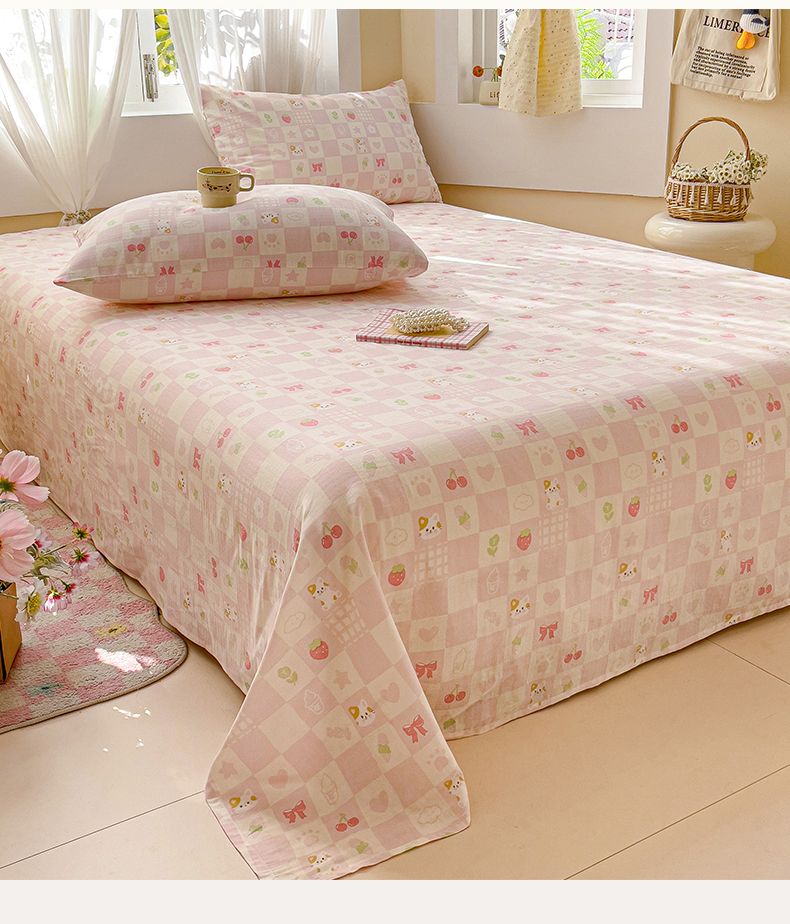 名兮-2025新款全棉双层纱床单 双层纱-格子喵