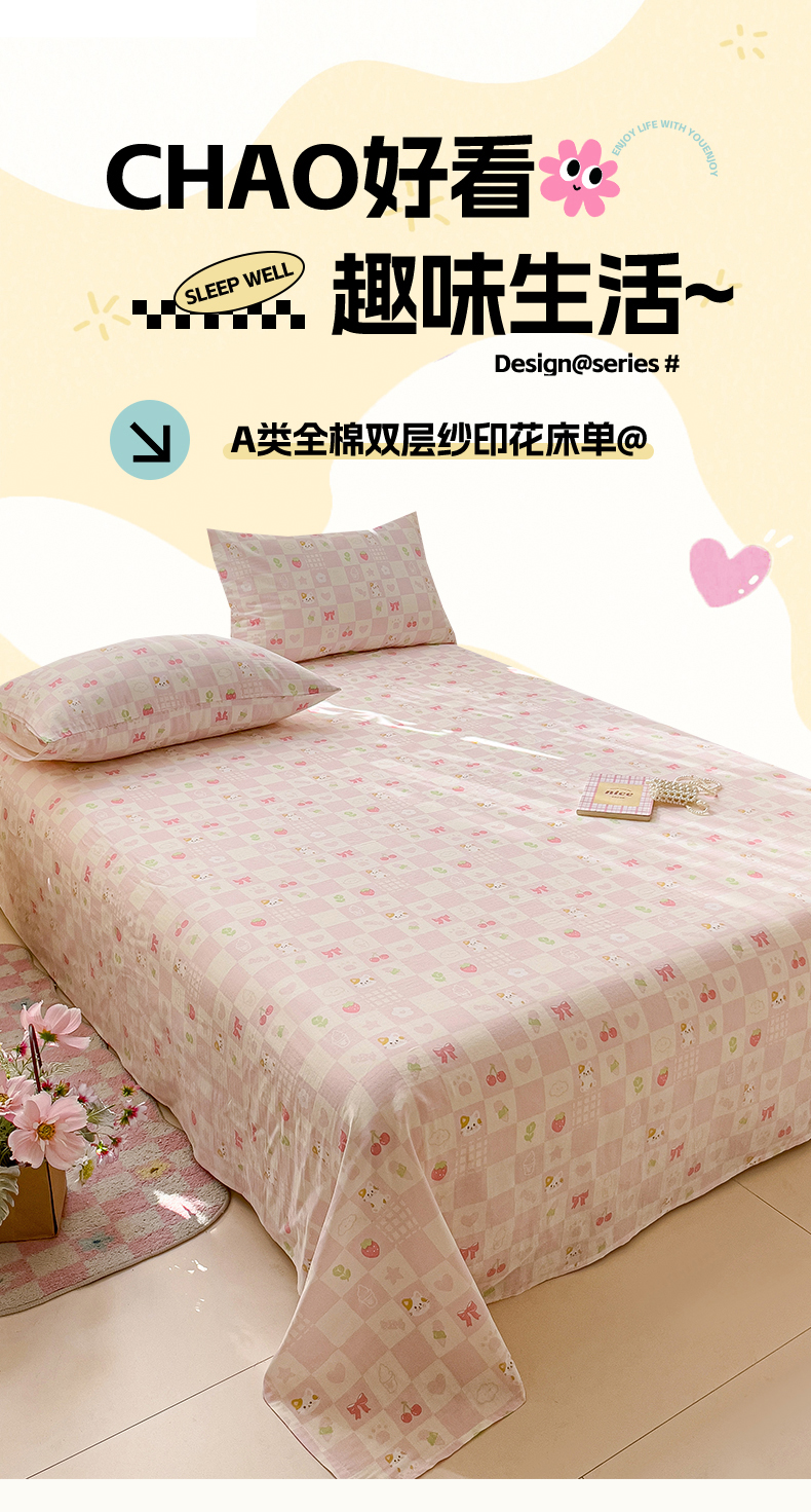 当前位置: 91家纺网 > 商品网购 > 床上用品 > 床单 > 名兮-2025新款全棉双层纱床单 双层纱-格子喵
