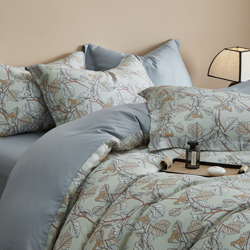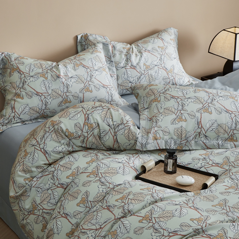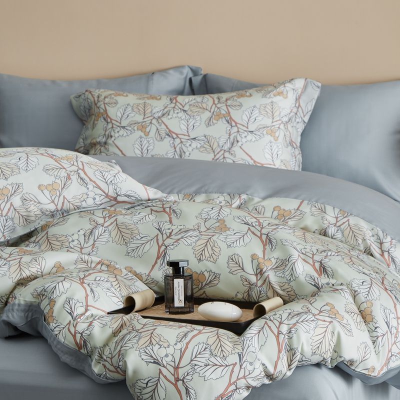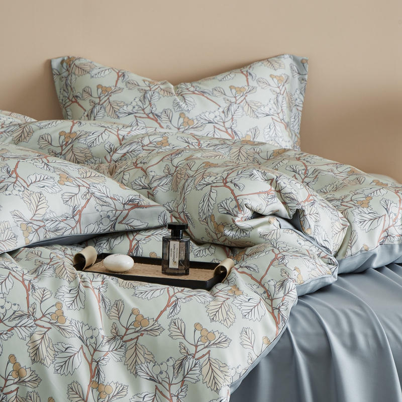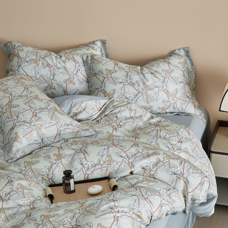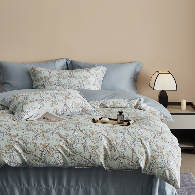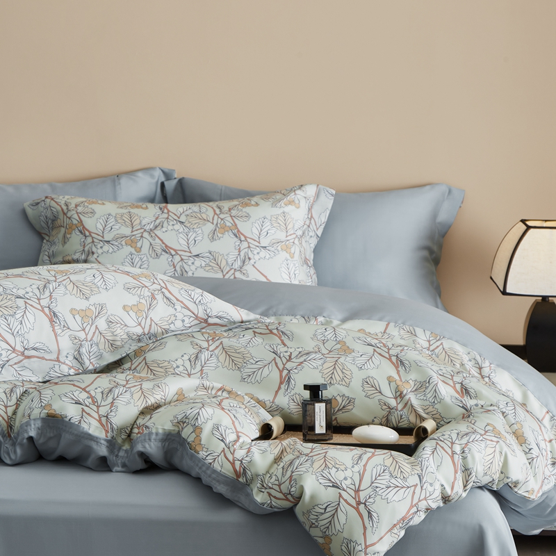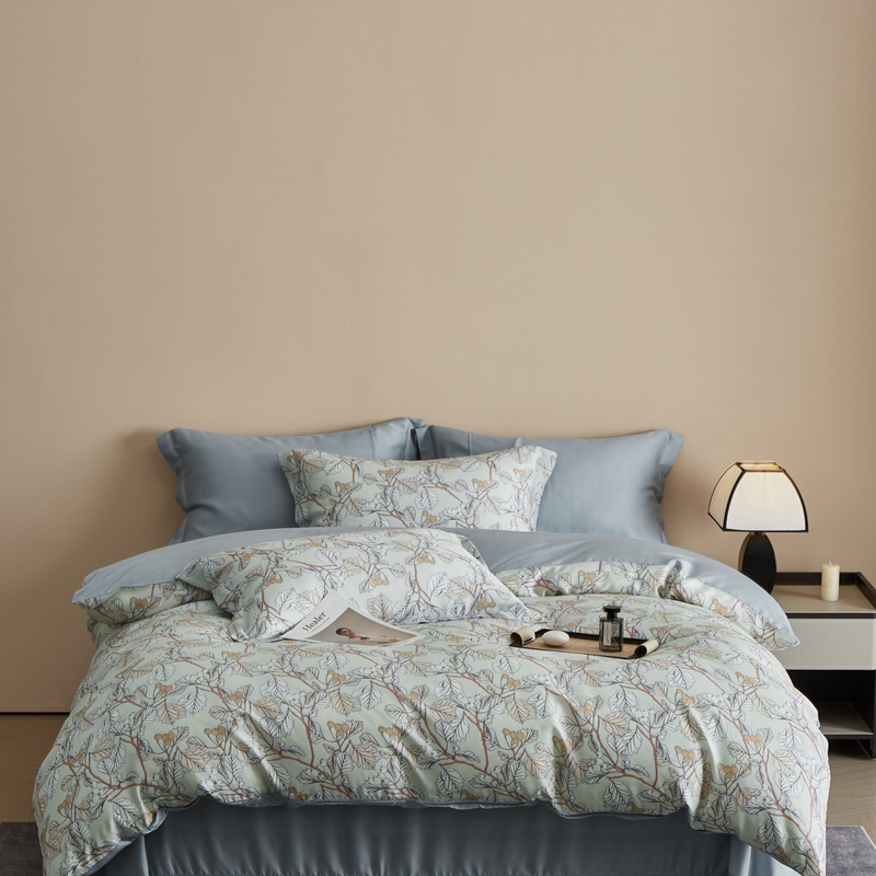 商品名称:顾家家居 2025新款莱塞尔兰精天丝印花四件套 蔓艺