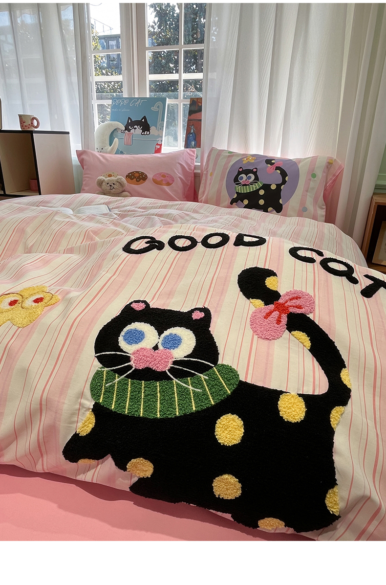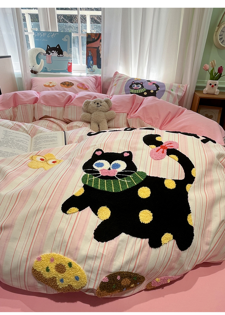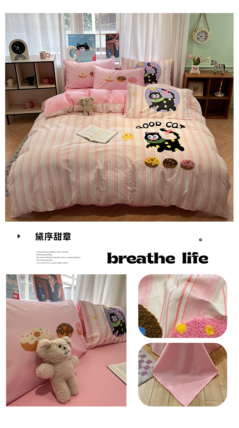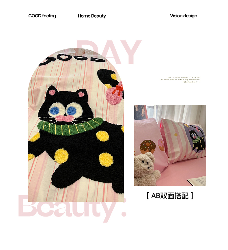 (总)蓝邻家纺 2024新款全棉磨毛卡通刺绣款四件套毛巾绣系列,安妮,汉堡先生,南极舞者,瑞瑞-绿,瑞瑞-米咖,心愿树
