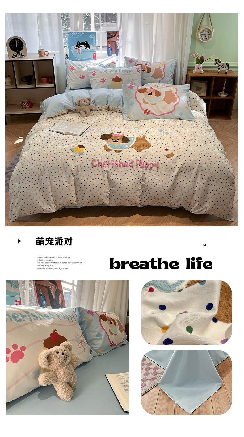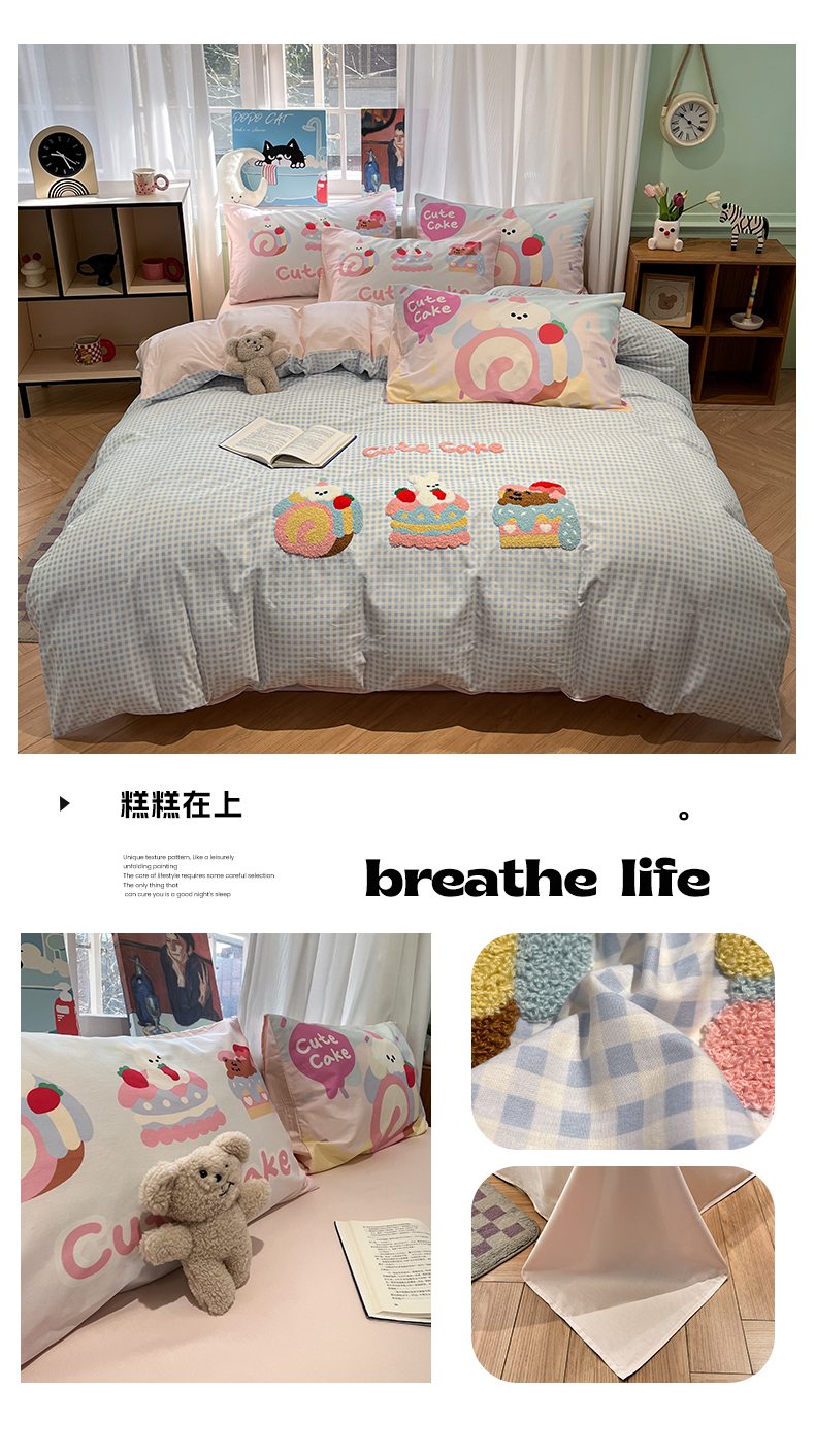 (总)蓝邻家纺 2024新款小清新印花全棉四件套学生宿舍三件套,茶园兔,风翩,机灵兔熊,可妮露,藤蔓兔,筱薇