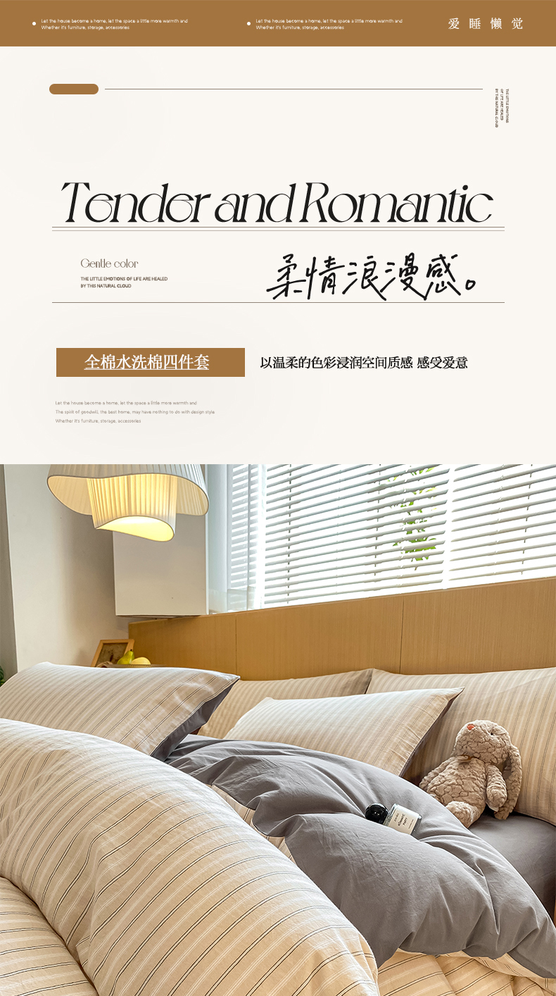 当前位置: 91家纺网 > 商品网购 > 床品套件 > 四件套 > 全棉普通四件套 > 恋人优选 2025新款条纹全棉水洗四件套 简希米条