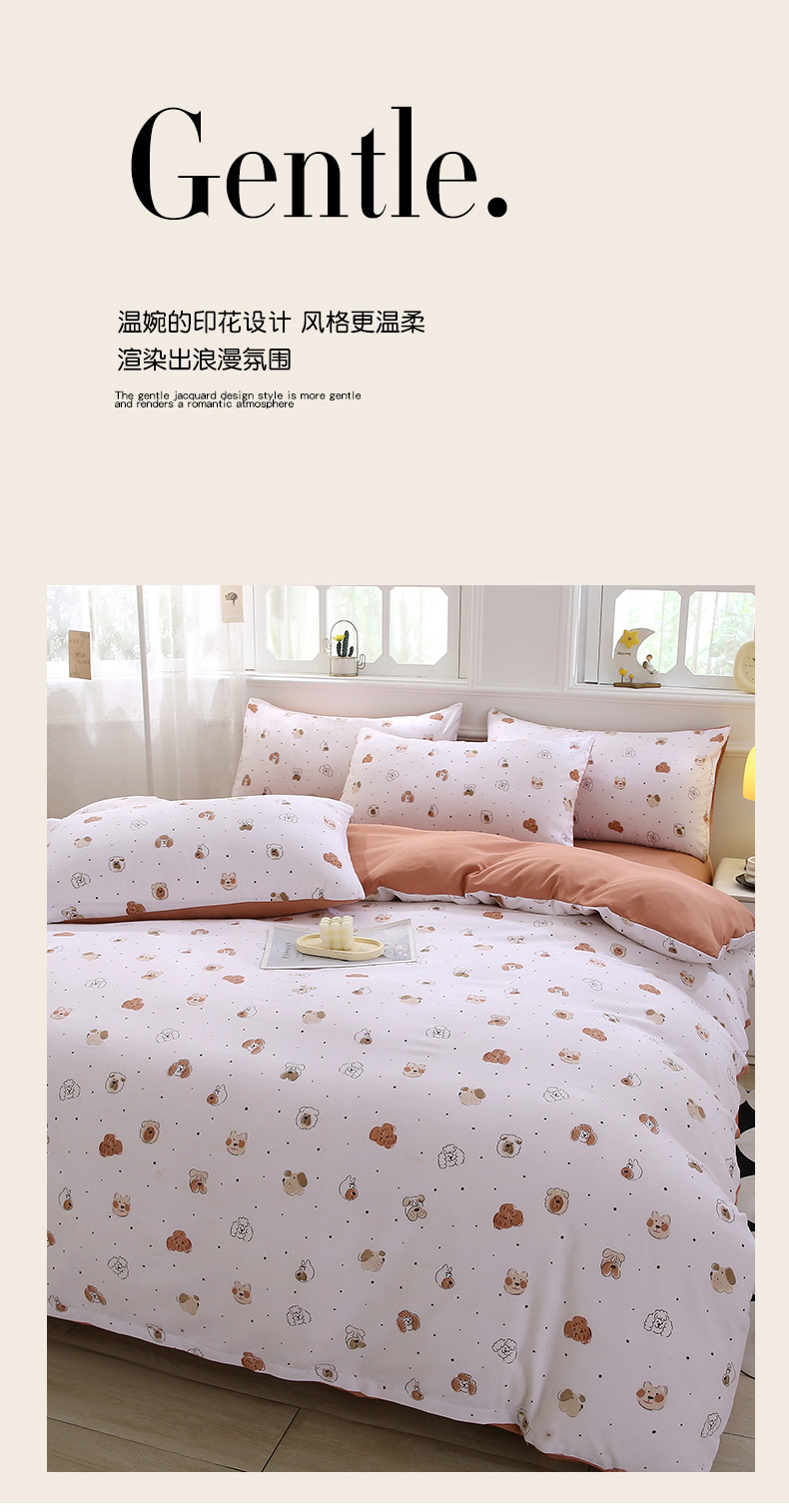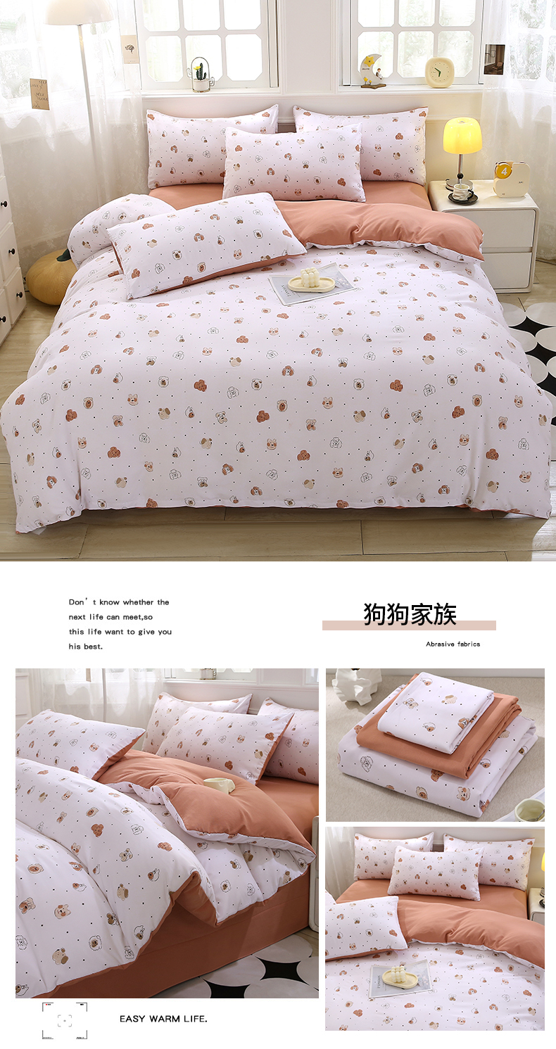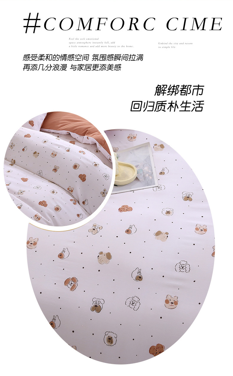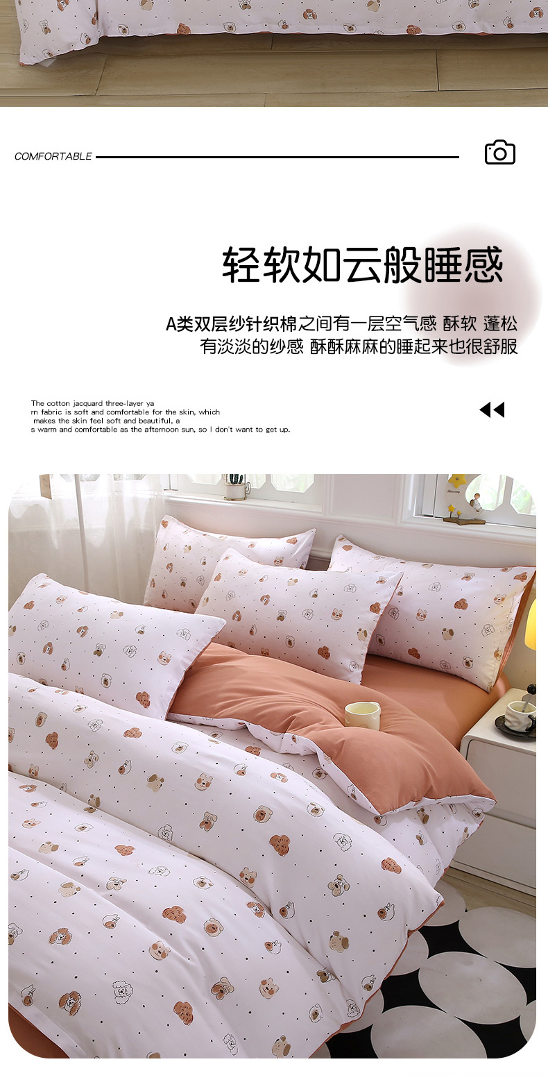 商品名称:织写 2025新款A类双层纱针织棉四件套床单四件套床单四件套小清新四件套 狗狗家族