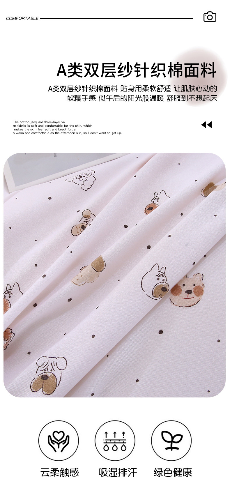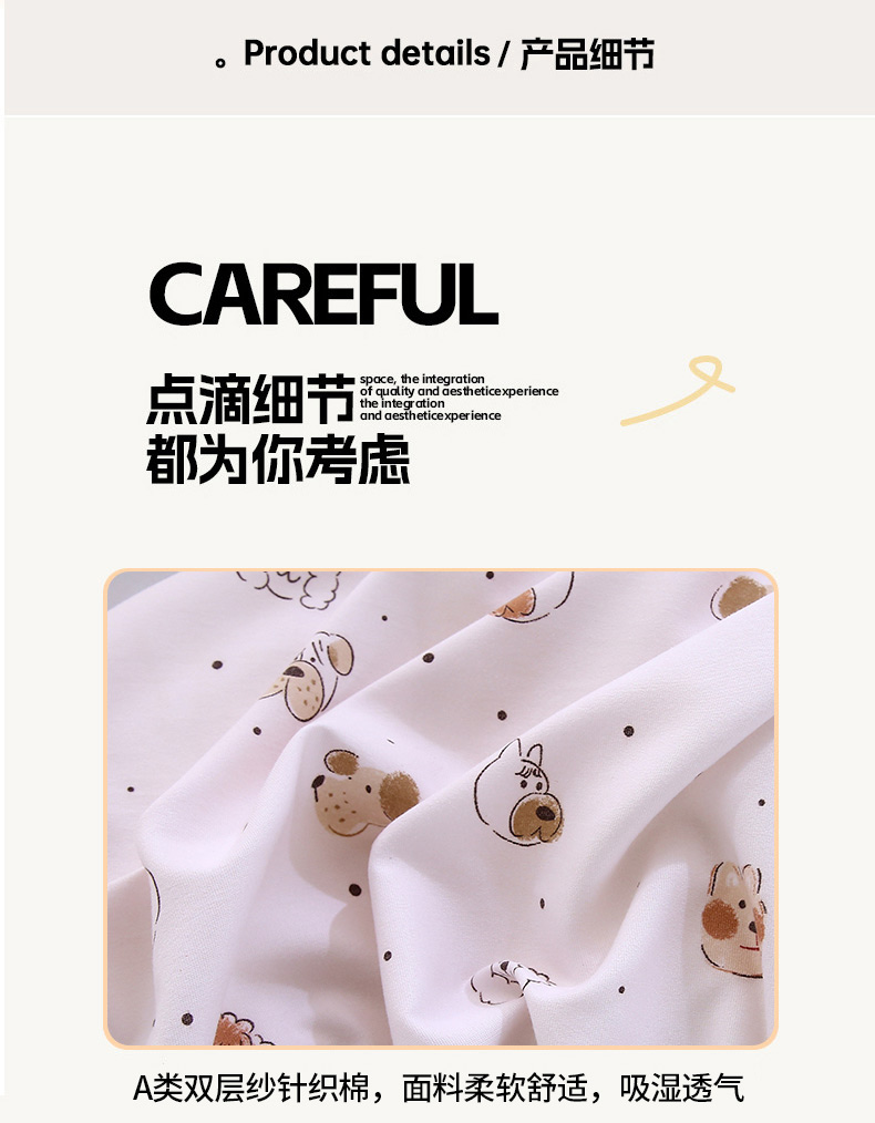 织写 2025新款A类双层纱针织棉四件套床单四件套床单四件套小清新四件套 狗狗家族
