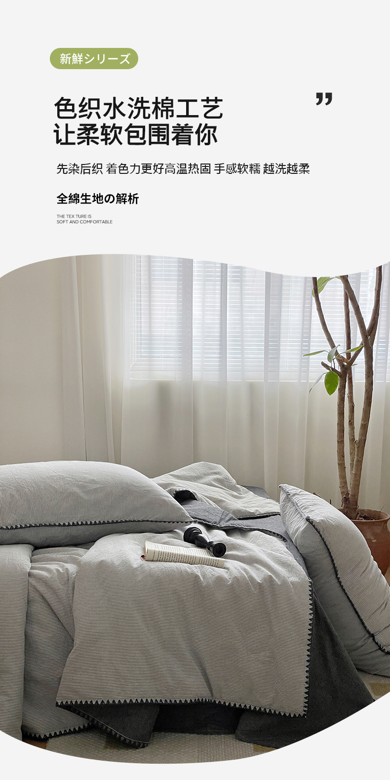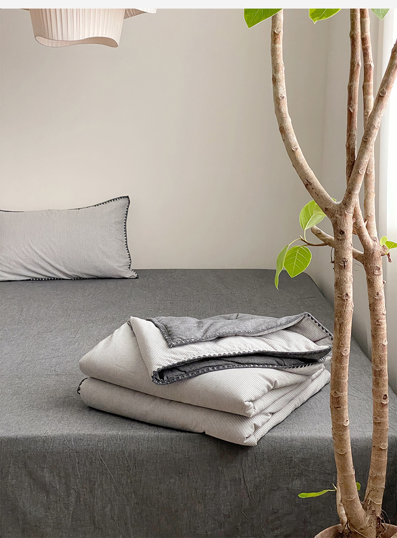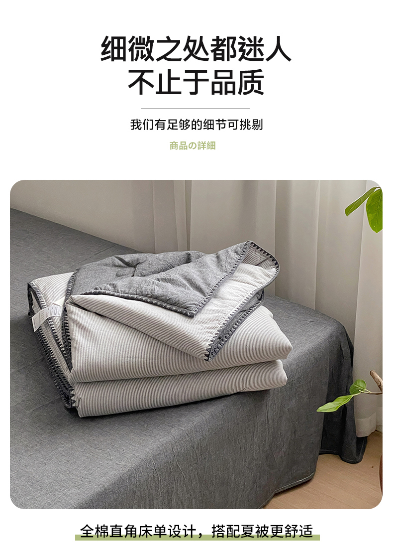 • 91家纺网 家纺一手货源 找家纺 被窝 2025新款全棉色织水洗棉夏被贝壳边大豆夏被空调被全棉夏凉被 细条纹灰