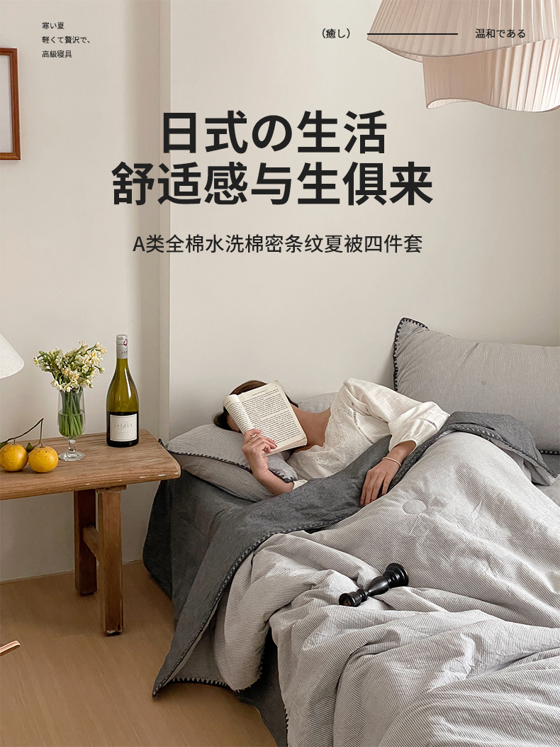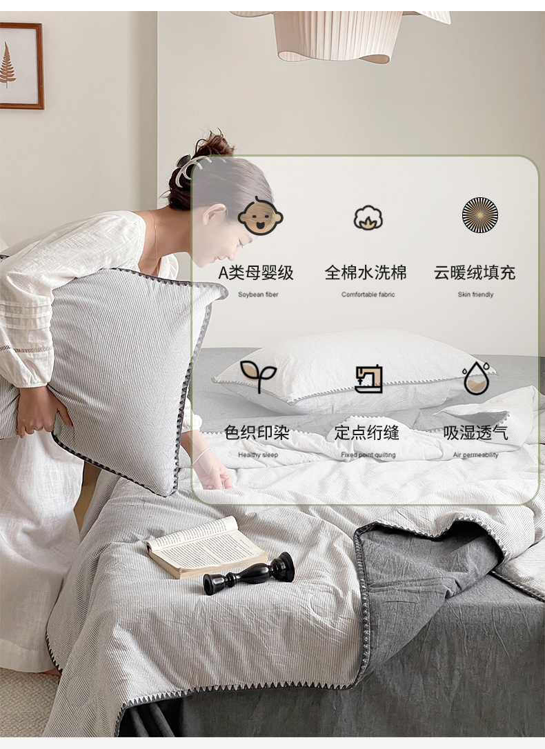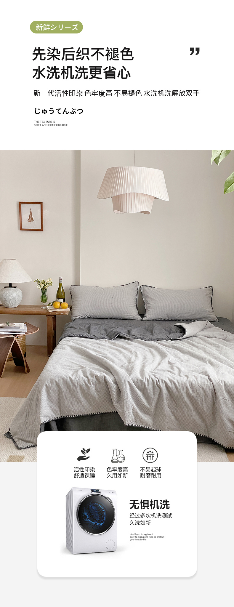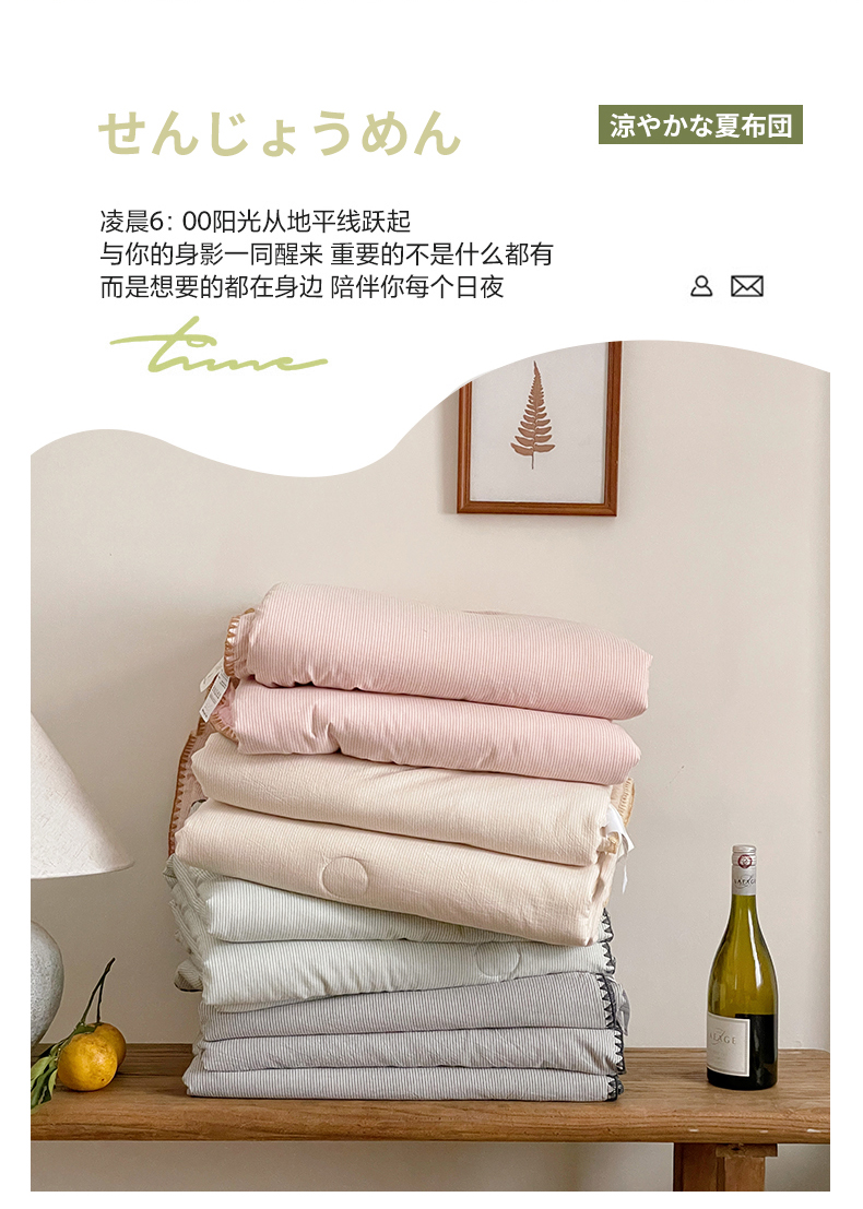 • 91家纺网 家纺一手货源 找家纺 被窝 2025新款全棉色织水洗棉夏被贝壳边大豆夏被空调被全棉夏凉被 细条纹灰