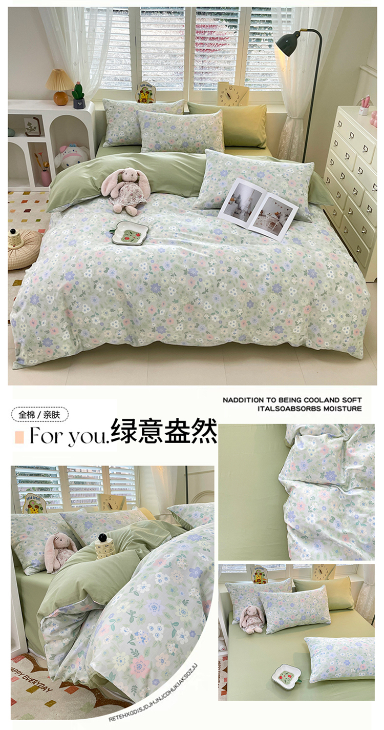 • 91家纺网 家纺一手货源 找家纺 宜家坊 2025全棉13070单被套印花小清新卡通碎花纯棉单品被套枕套(有预缩售后无忧 免费提供买家秀) 绿意盎然