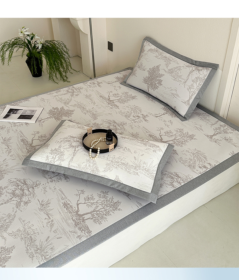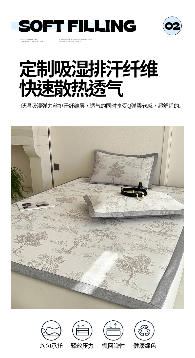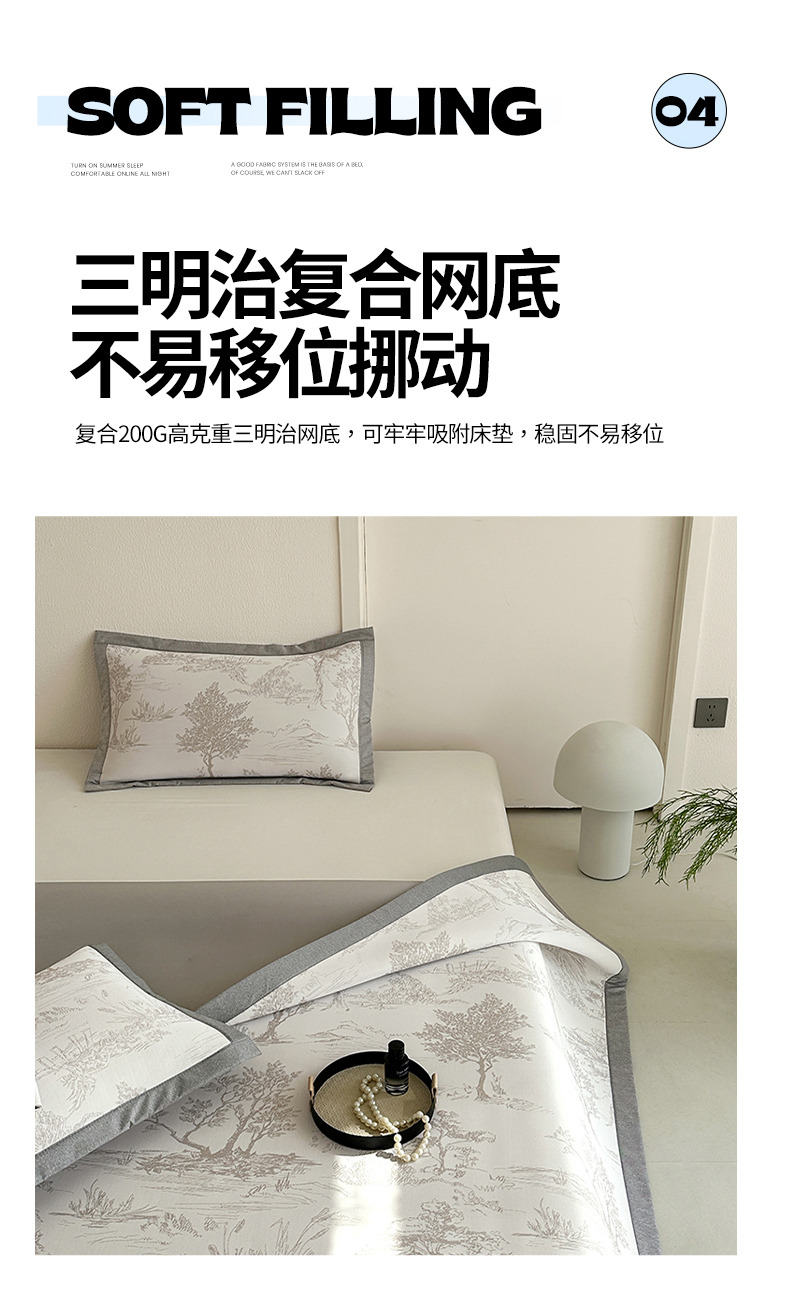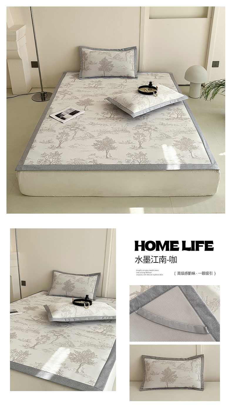 商品名称:网客家纺 2025新款高分子PE(聚乙烯)提花凉感软席 水墨江南-咖
