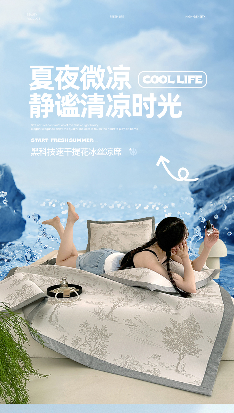 网客家纺 2025新款高分子PE(聚乙烯)提花凉感软席 水墨江南-咖