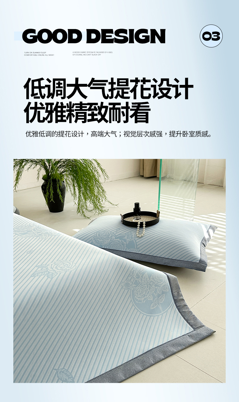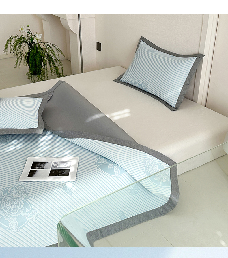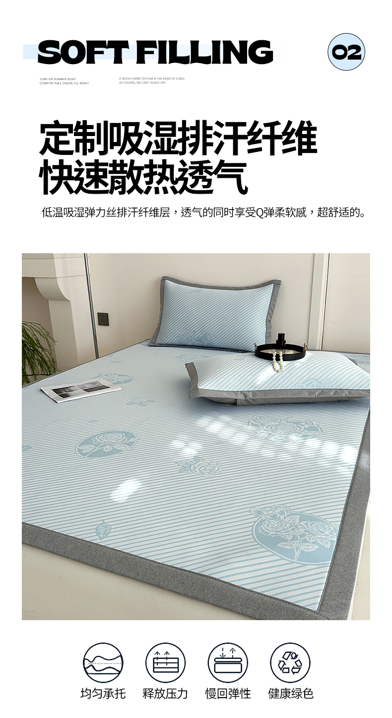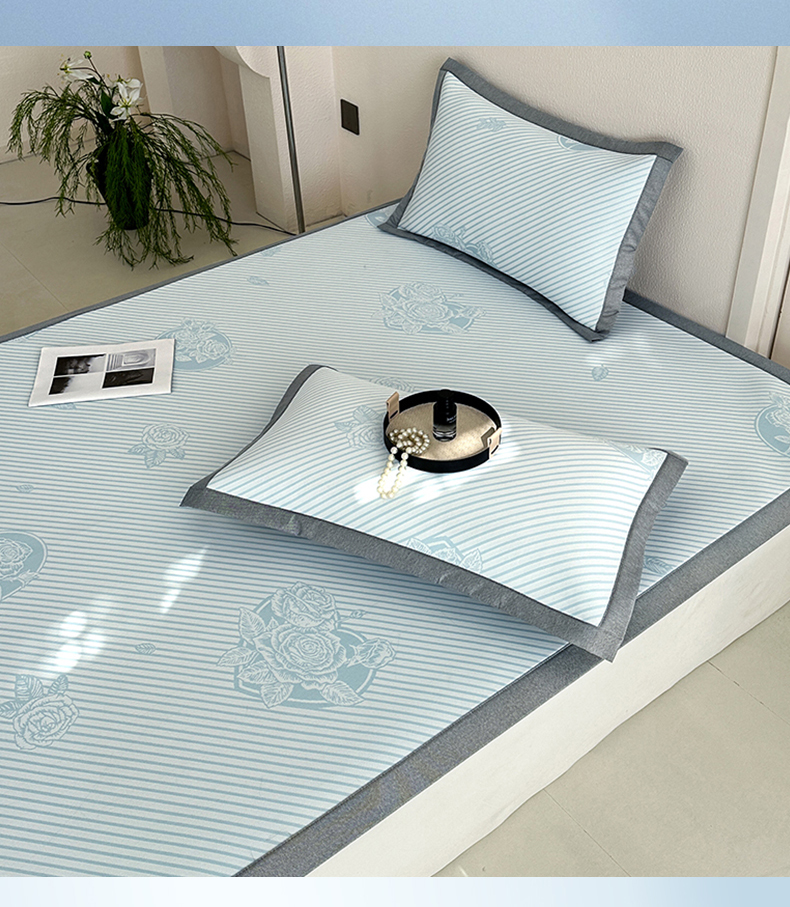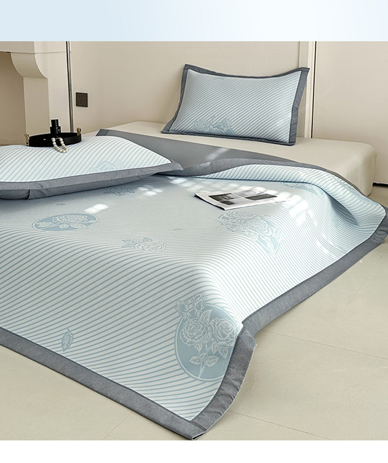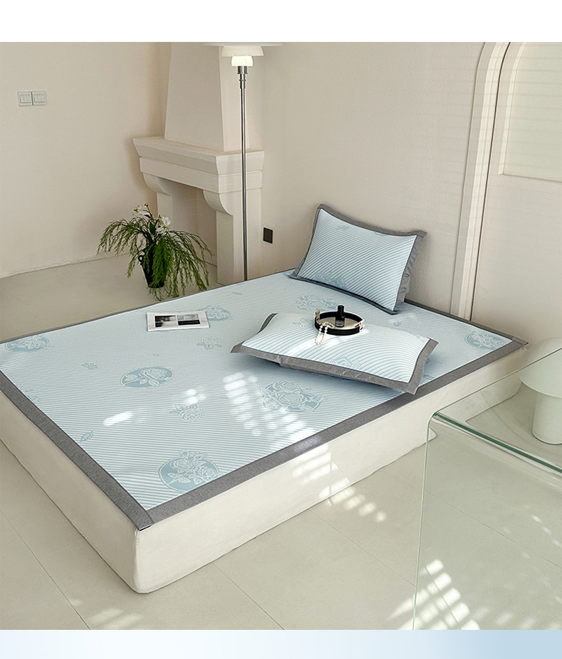 商品名称:网客家纺 2025新款高分子PE(聚乙烯)提花凉感软席 圆梦玫瑰-蓝
