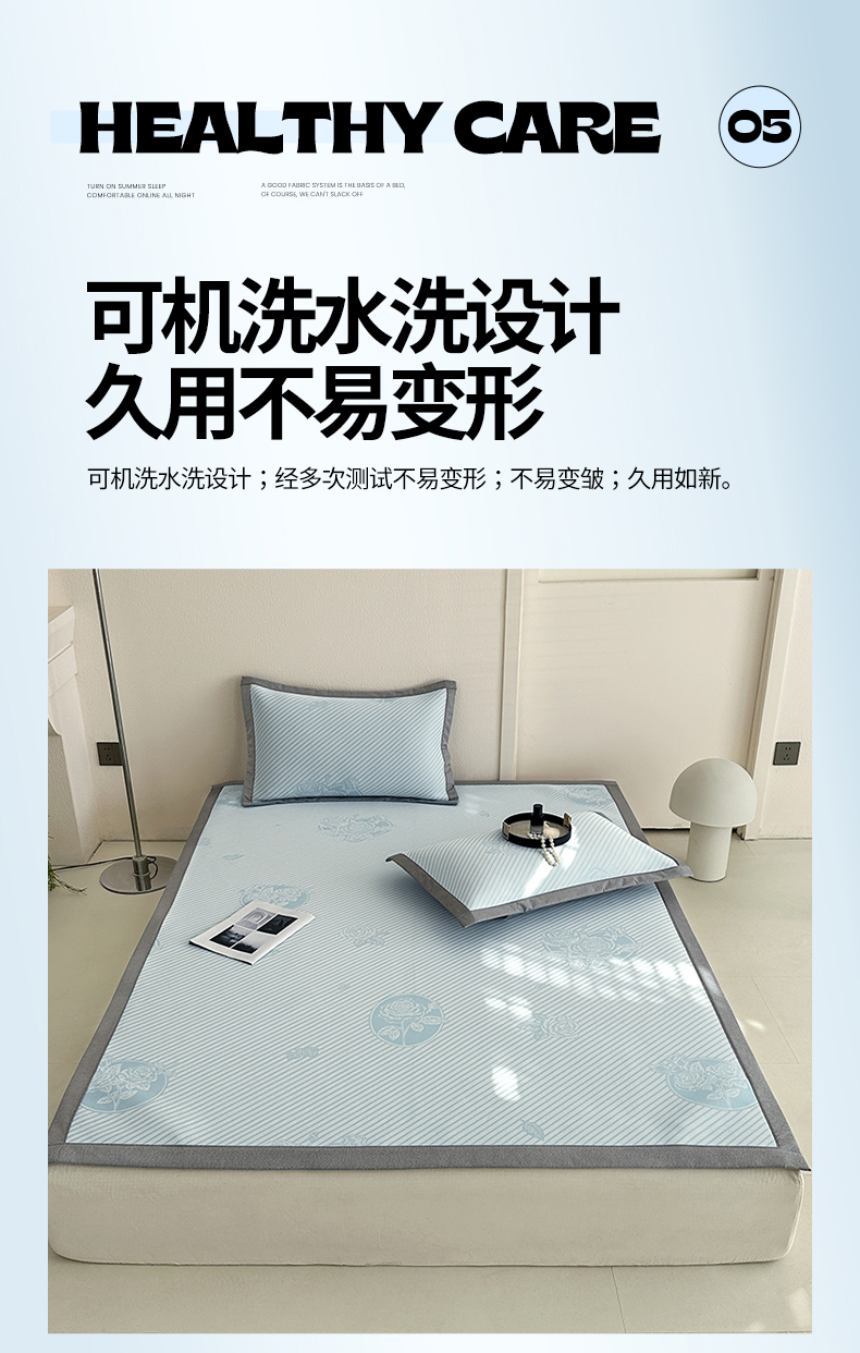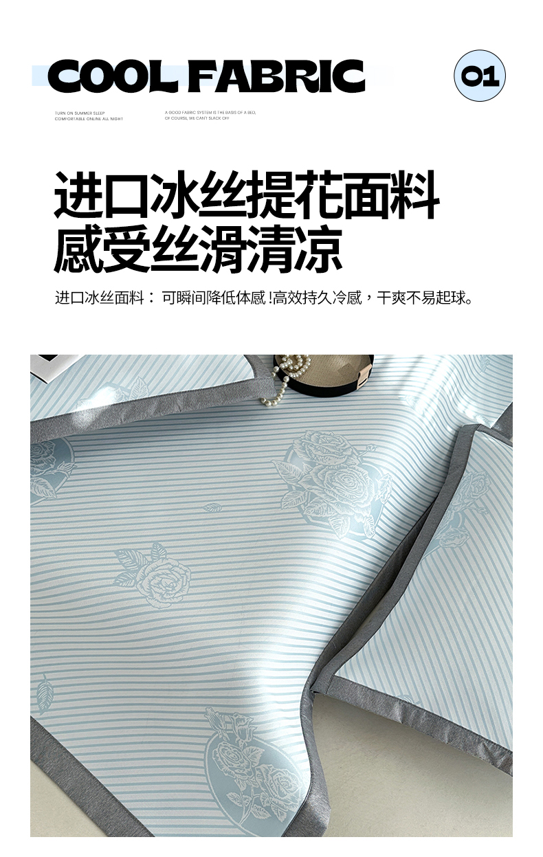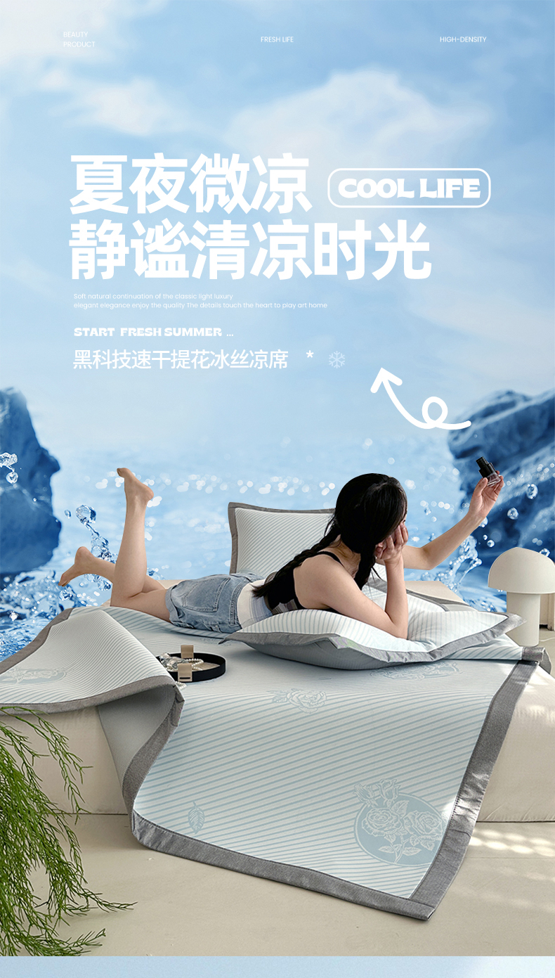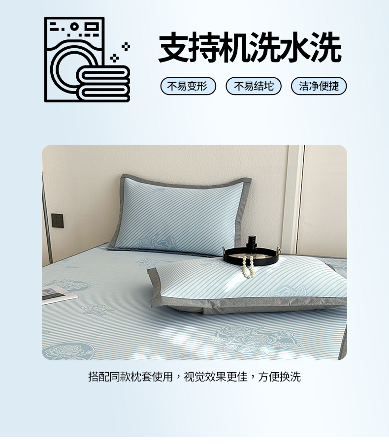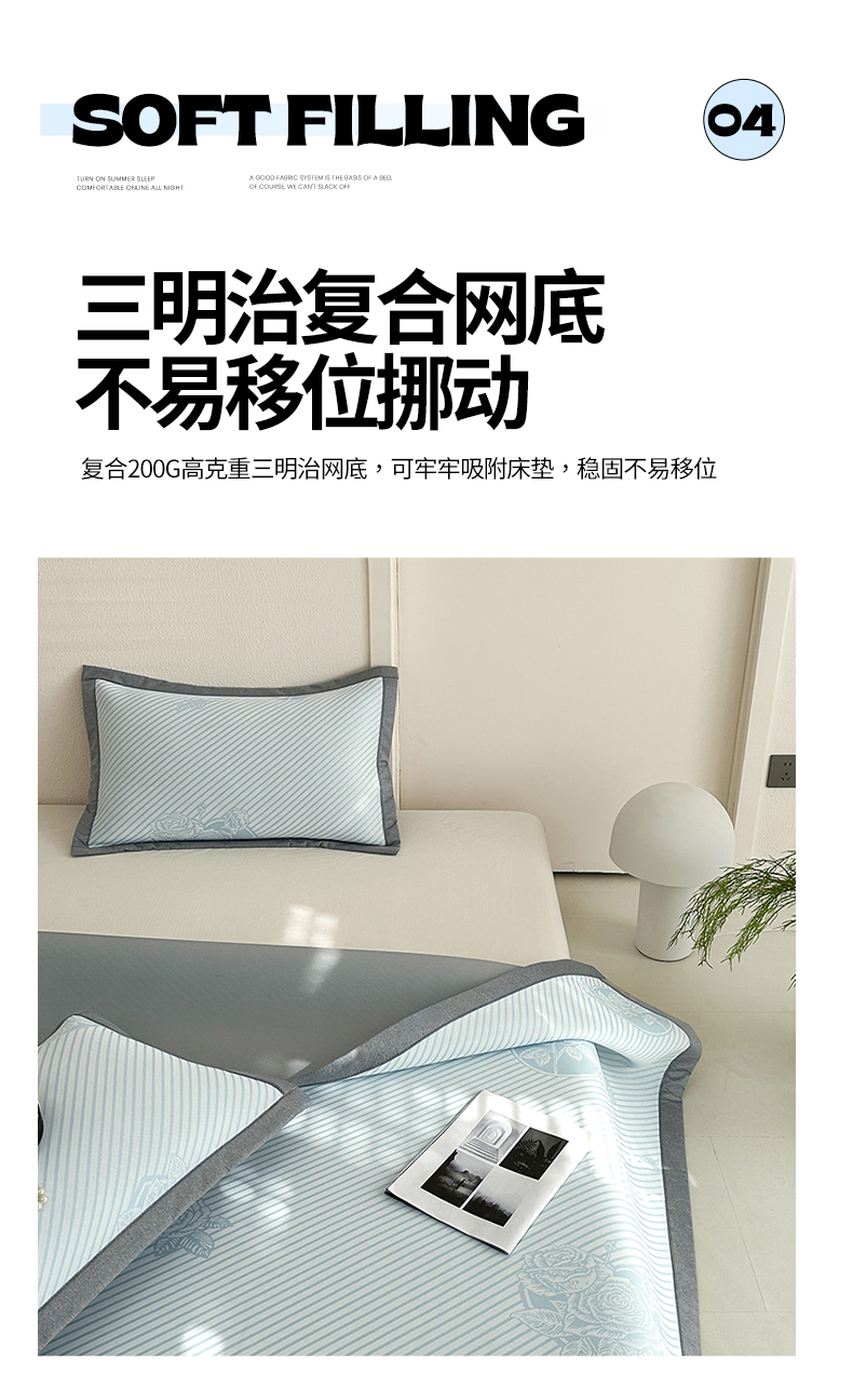 商品名称:网客家纺 2025新款高分子PE(聚乙烯)提花凉感软席 圆梦玫瑰-蓝