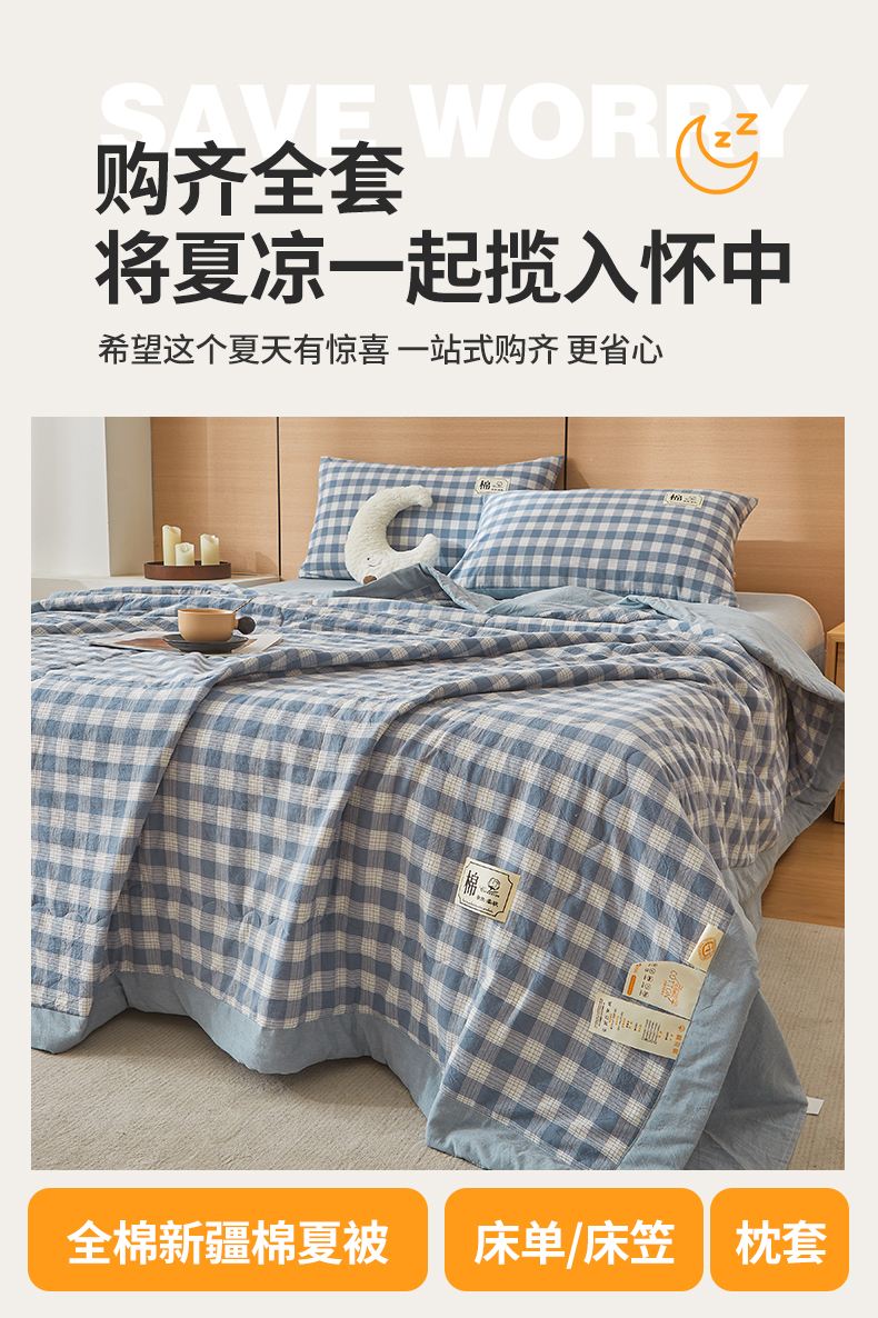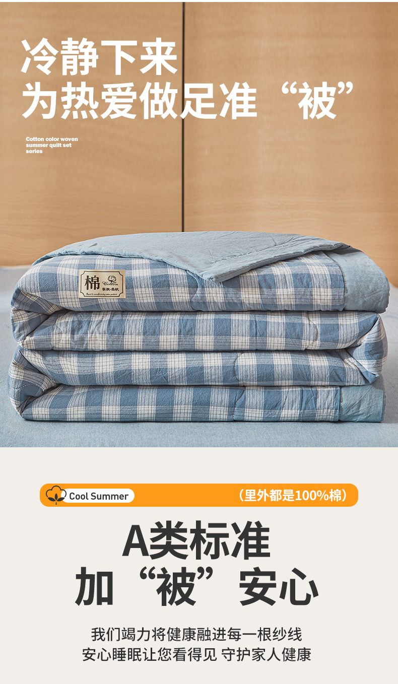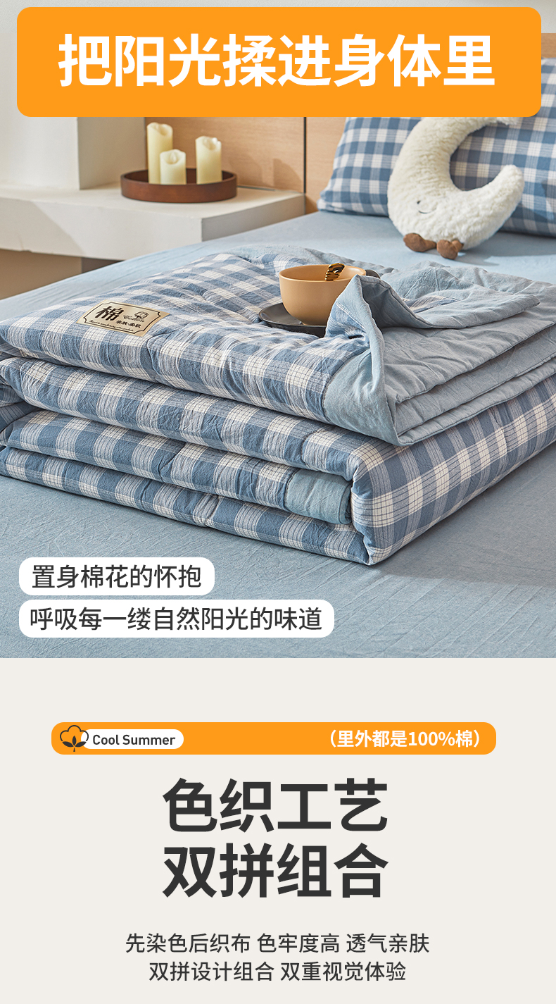 被子 > 夏被 > (总)招财星家纺 2025新款新疆棉花被夏被100%里外全棉棉花夏被无印风全棉色织水洗棉夏凉被空调被春秋被单人可机洗