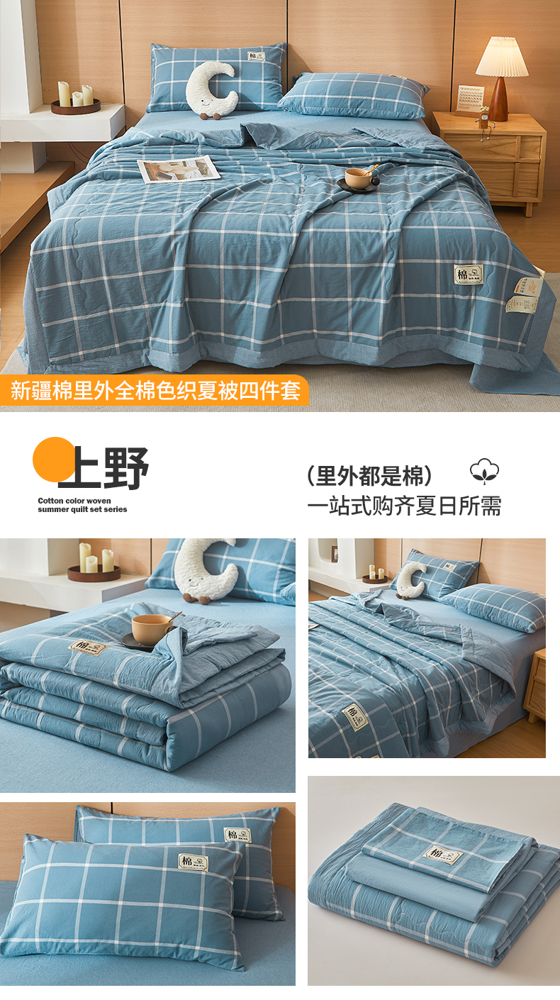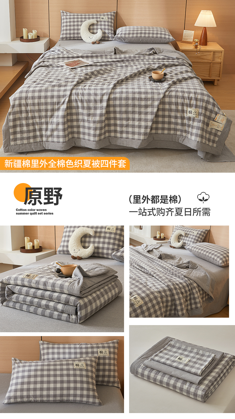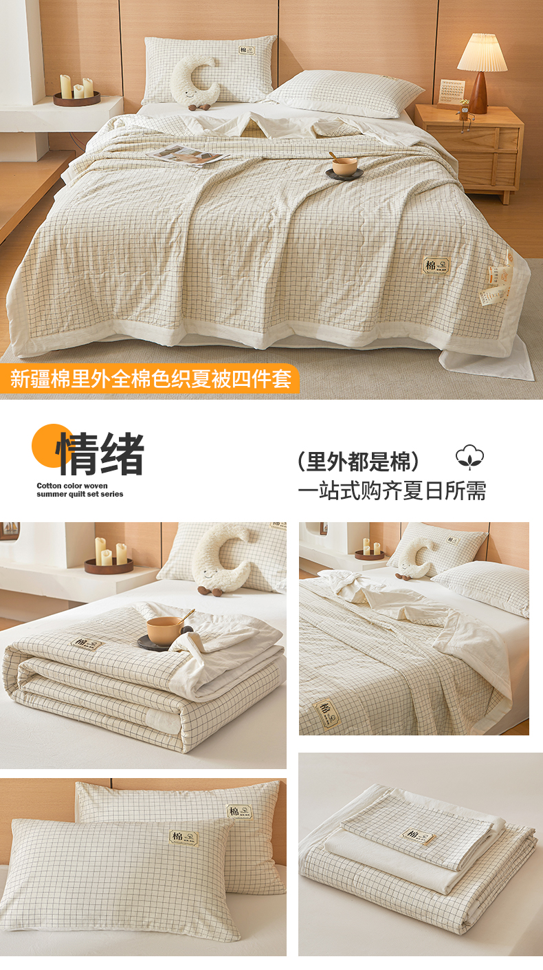 商品名称:(总)招财星家纺 2025新款新疆棉花被夏被100%里外全棉棉花夏被无印风全棉色织水洗棉夏凉被空调被春秋被单人可机洗