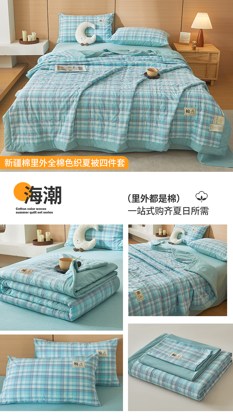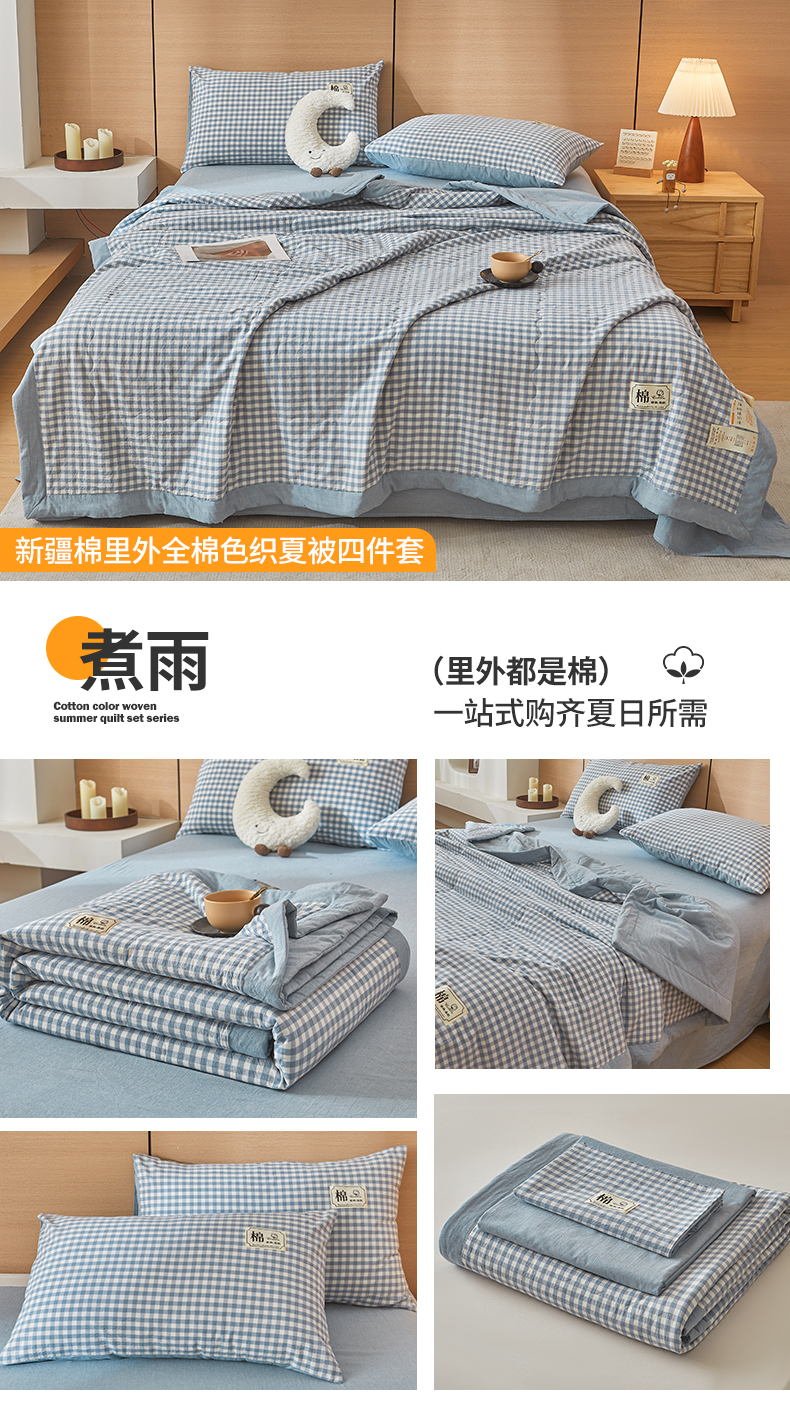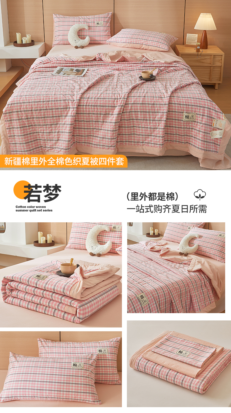 商品名称:(总)招财星家纺 2025新款新疆棉花被夏被100%里外全棉棉花夏被无印风全棉色织水洗棉夏凉被空调被春秋被单人可机洗
