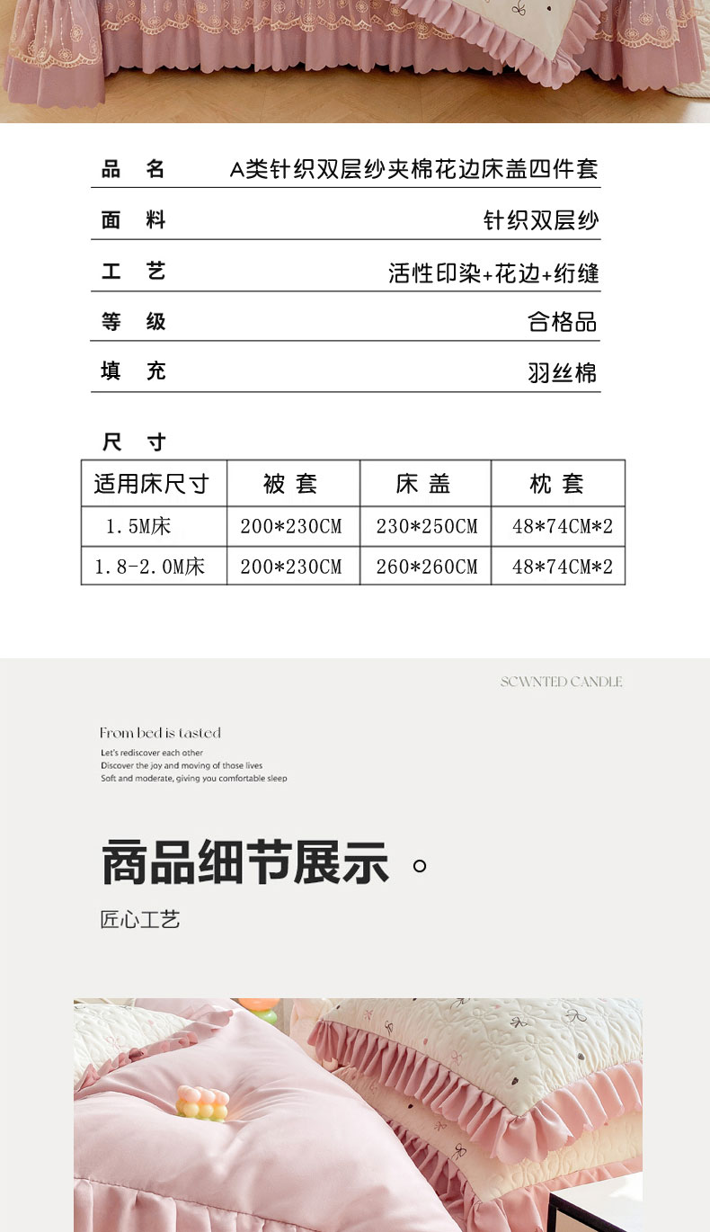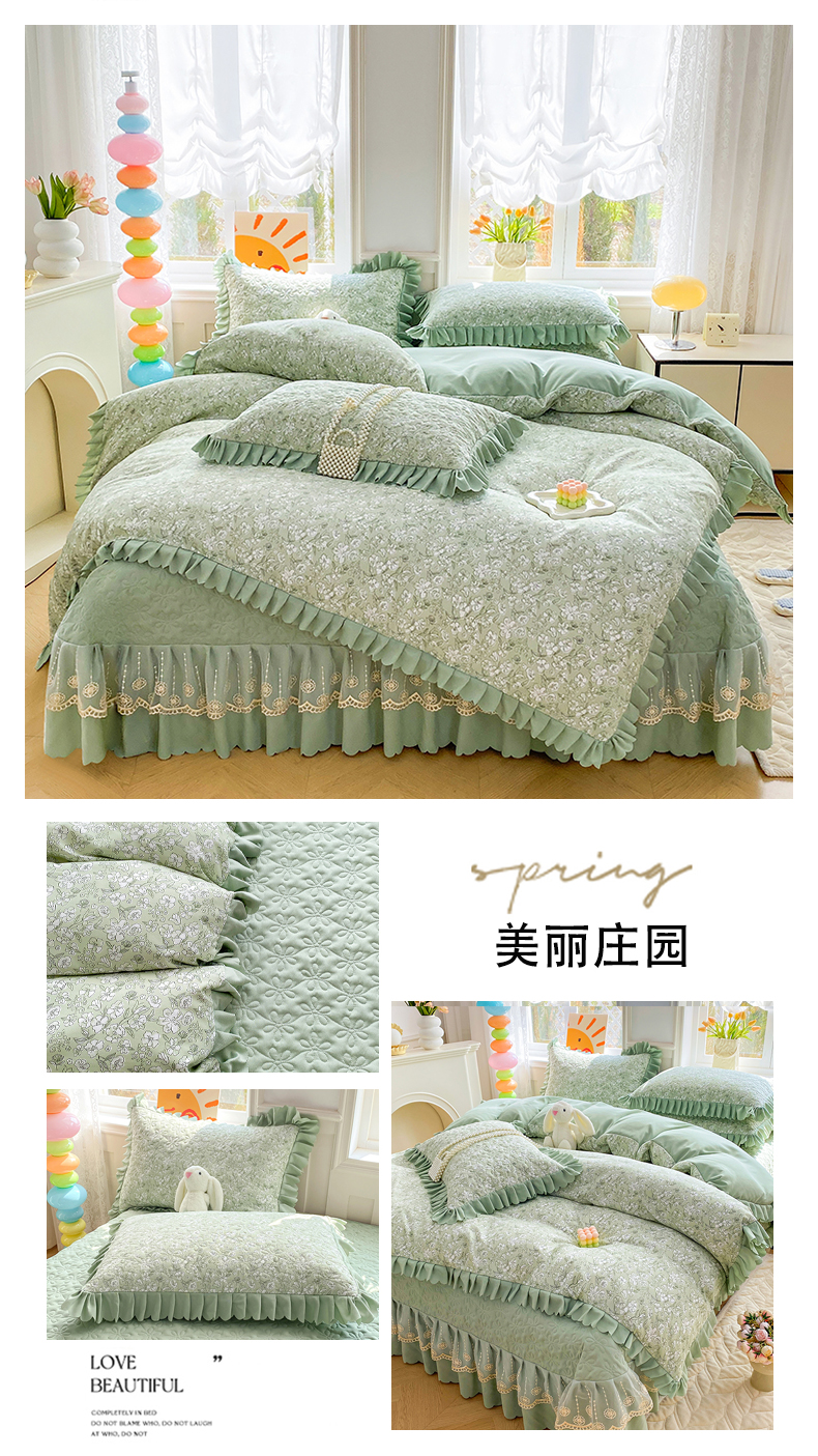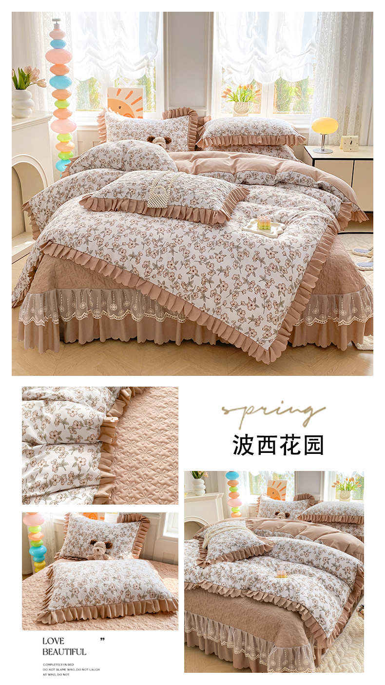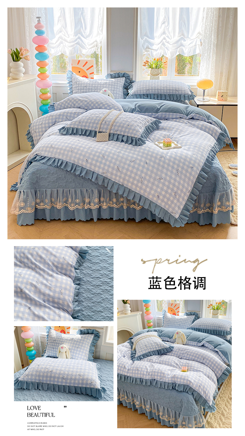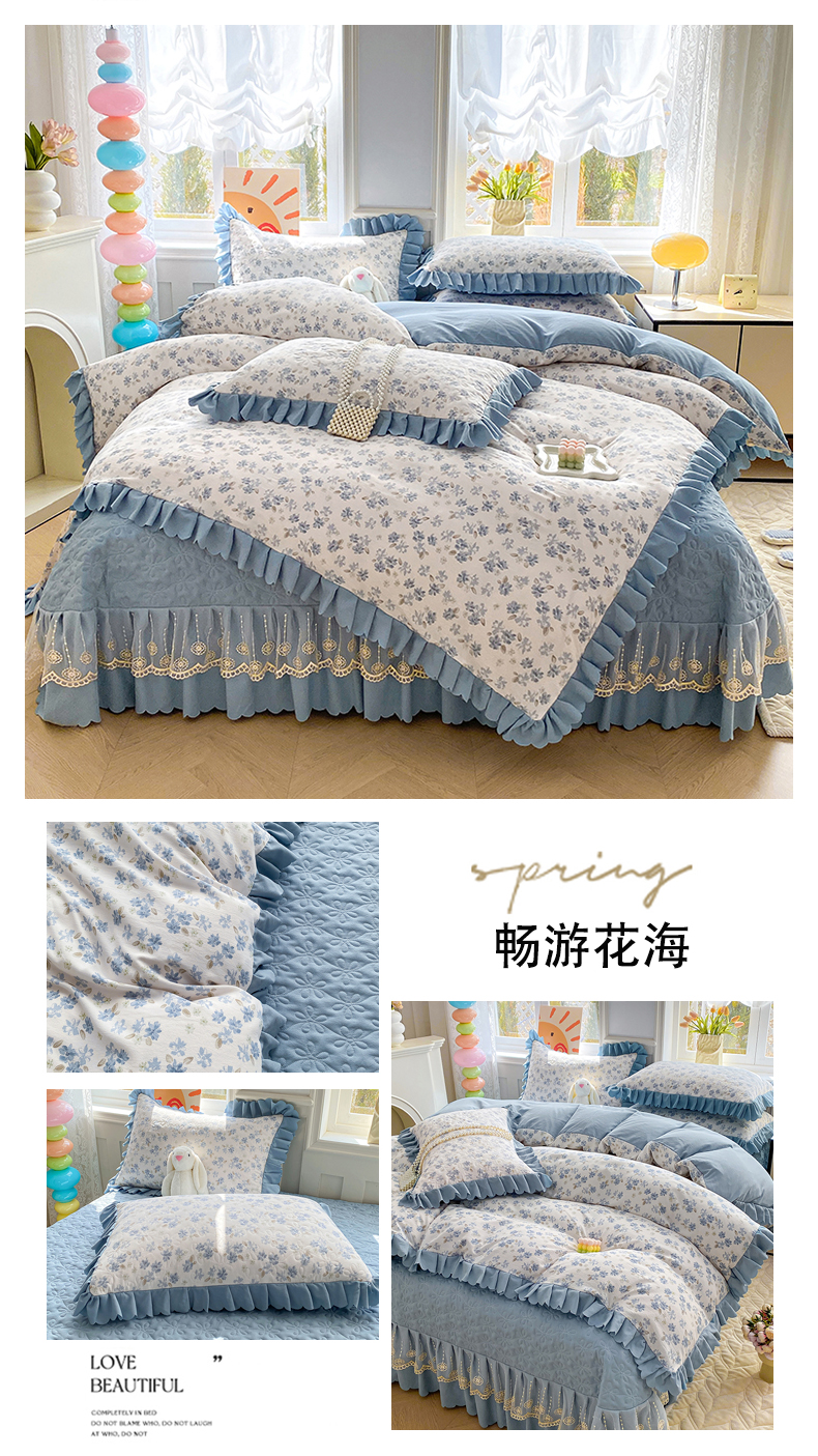 商品名称:(总)提花大世界 2025直播热款A类针织棉双层纱夹棉床盖床裙花边单件三件四件套