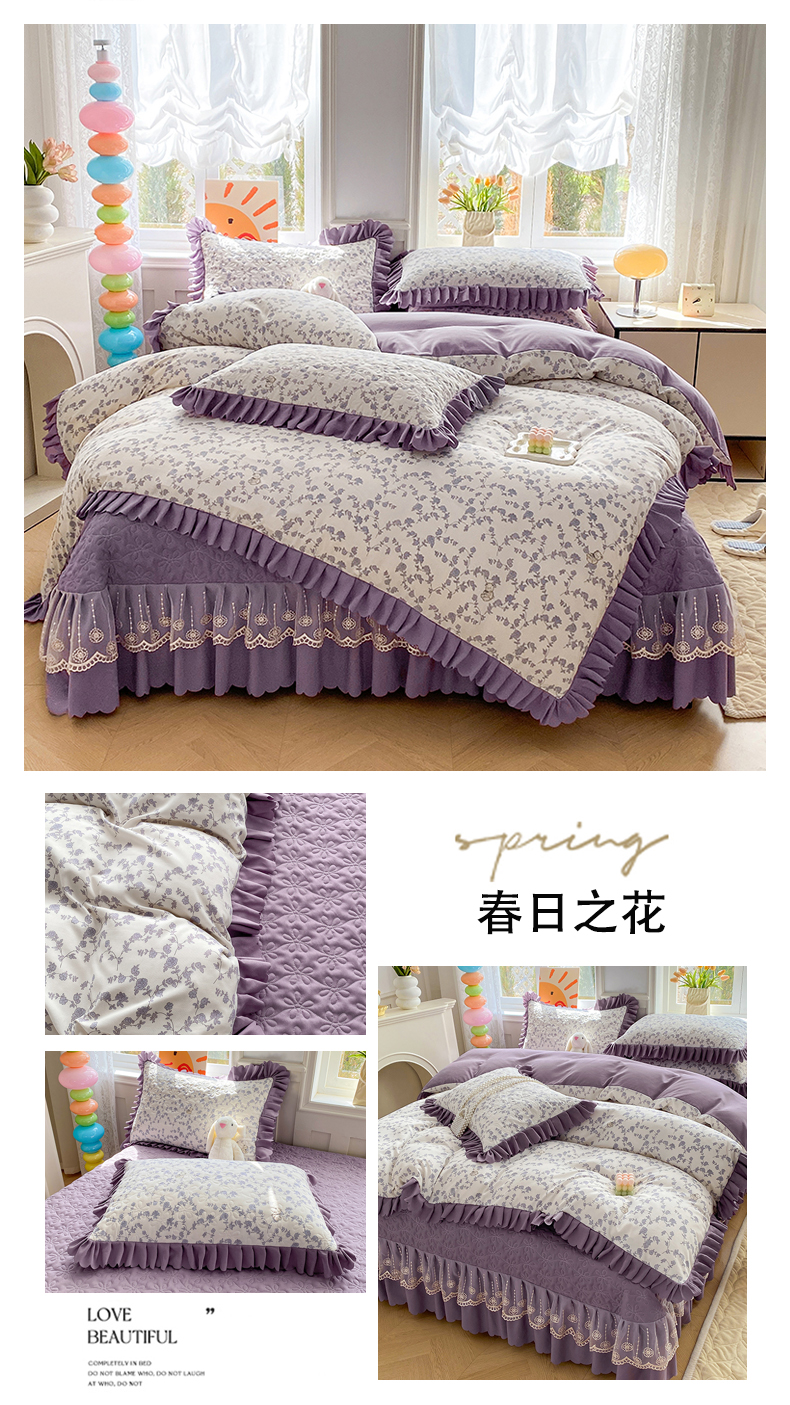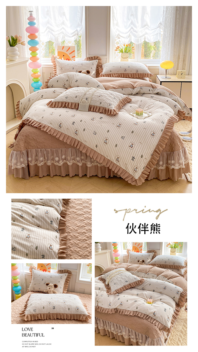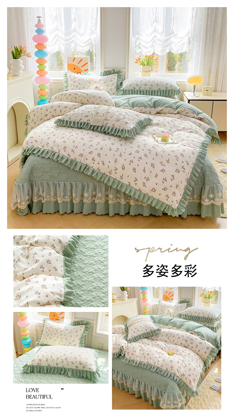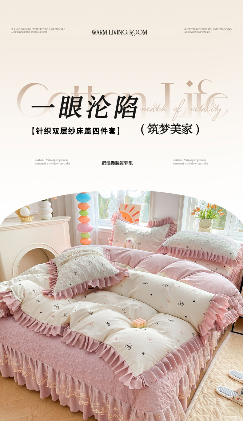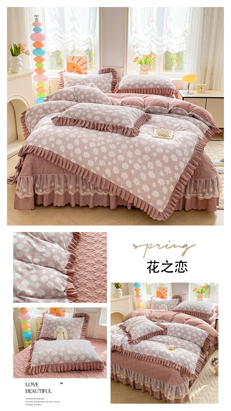 (总)提花大世界 2025直播热款A类针织棉双层纱夹棉床盖床裙花边单件三件四件套