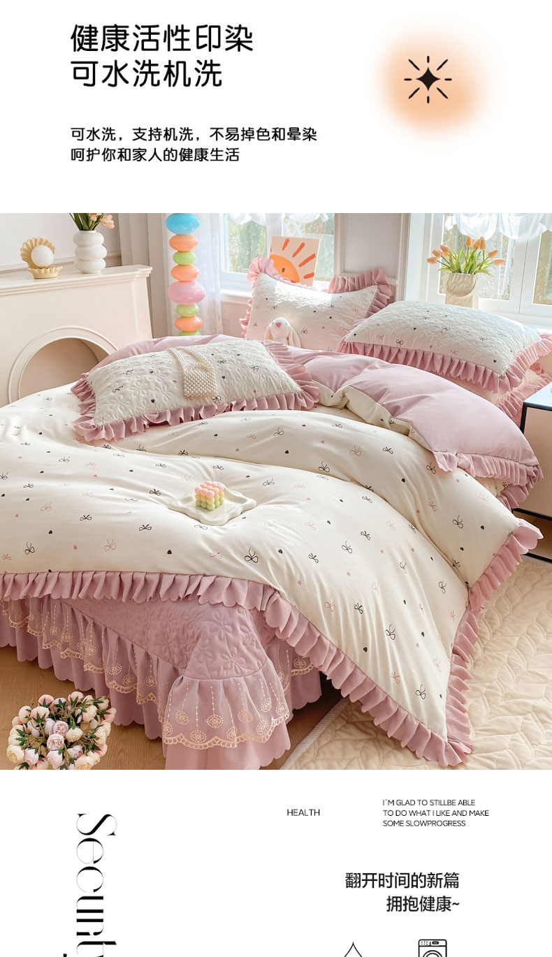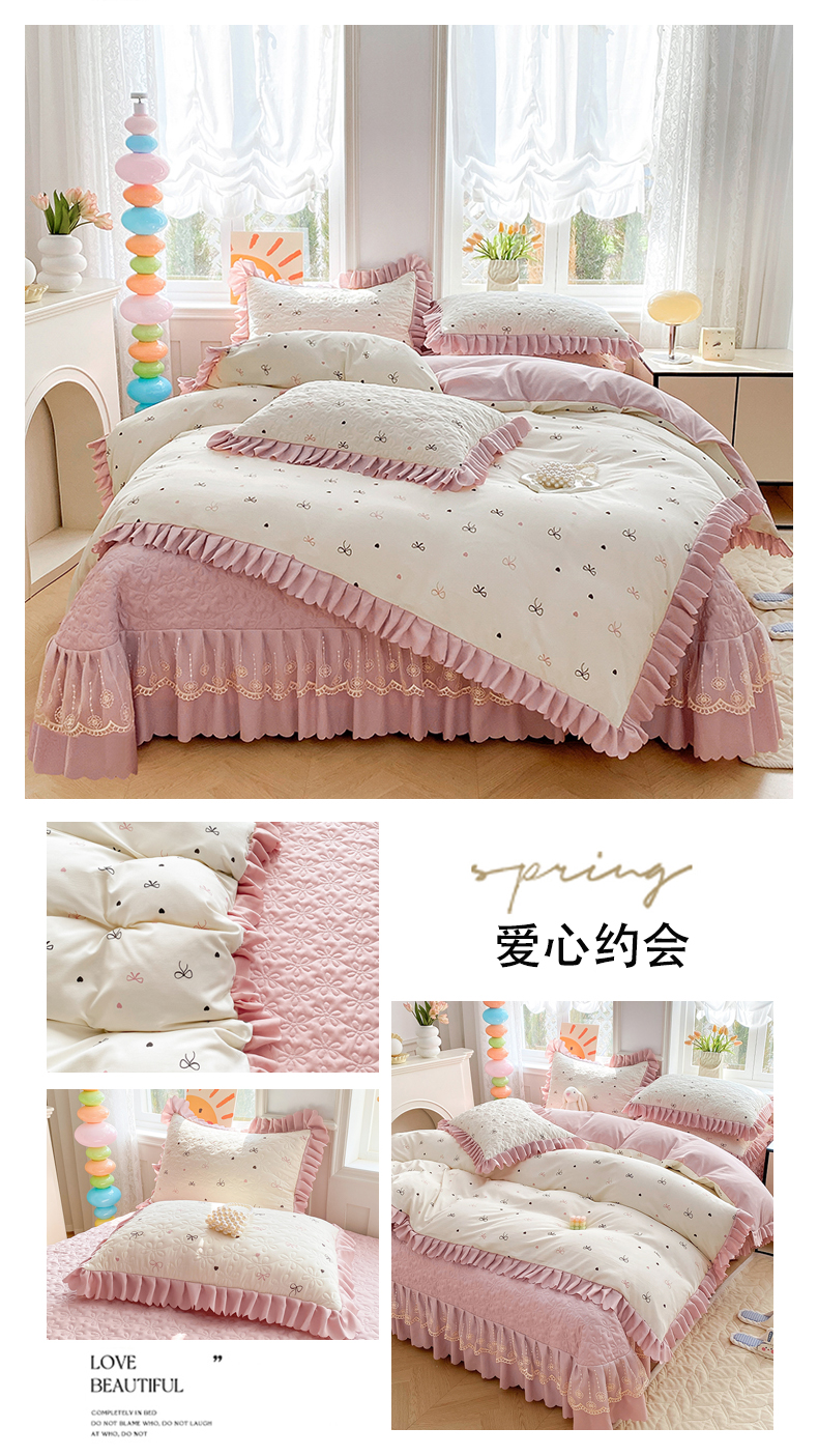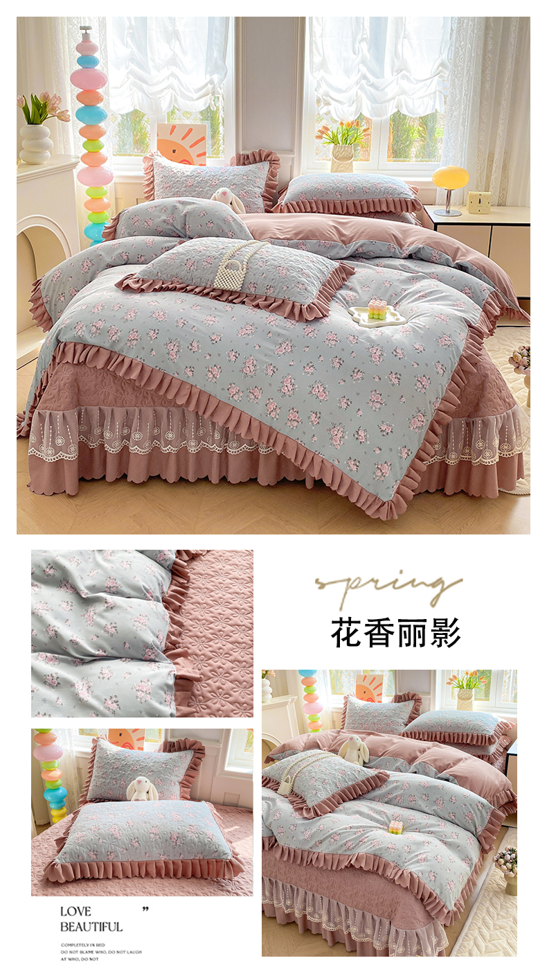 (总)提花大世界 2025直播爆款全棉活性印花夹棉床盖床裙花边四件套,岸边花语,花开浪漫,花之恋,漫步花香,美琳庄园-粉,偶遇花开,心心相恋-兰,樱桃