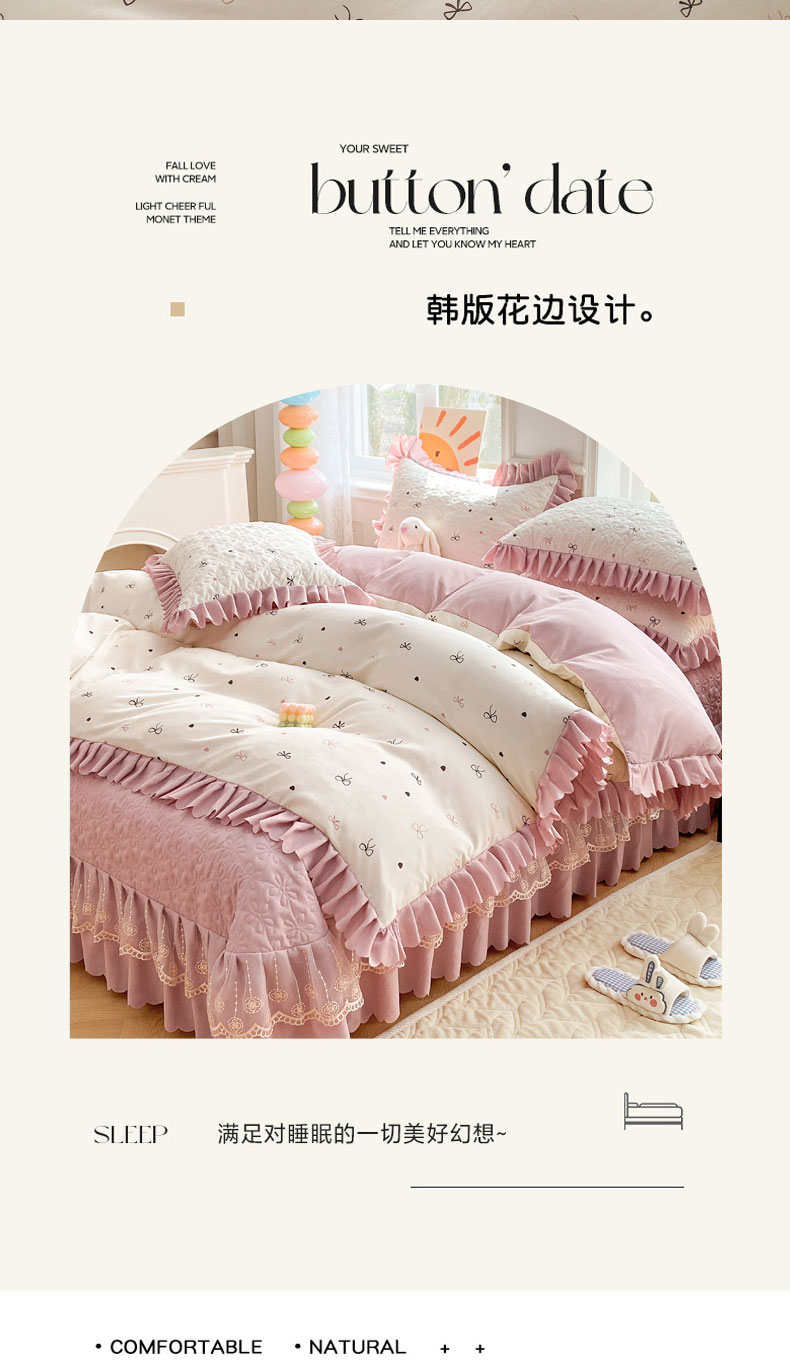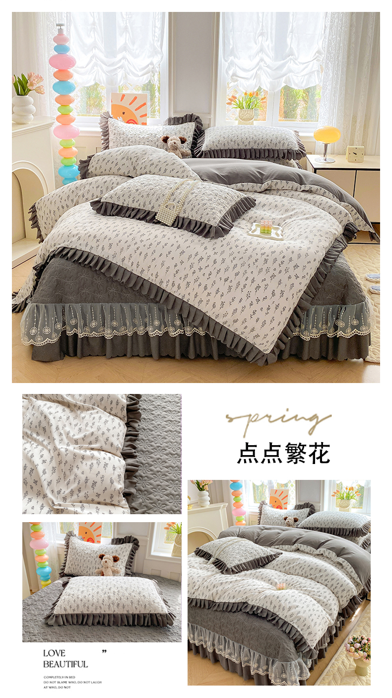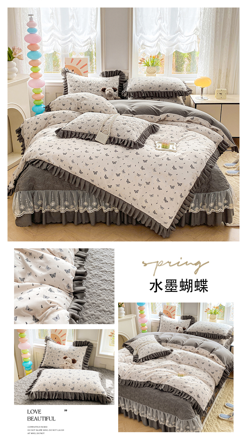 (总)提花大世界 2025新款爆款高克重牛奶绒印花夹棉蕾丝花边床盖床裙单件三件四件套,豹纹,波纹,草莓豹纹,黑茉香,花季物语,花枝韵,腊肠狗,浪漫花语,美丽花园,米色蝴蝶,泥点南瓜,泥点圆圈,丝洛繁花,向阳花,幸运狗,樱桃玉,植映叶,字母布布