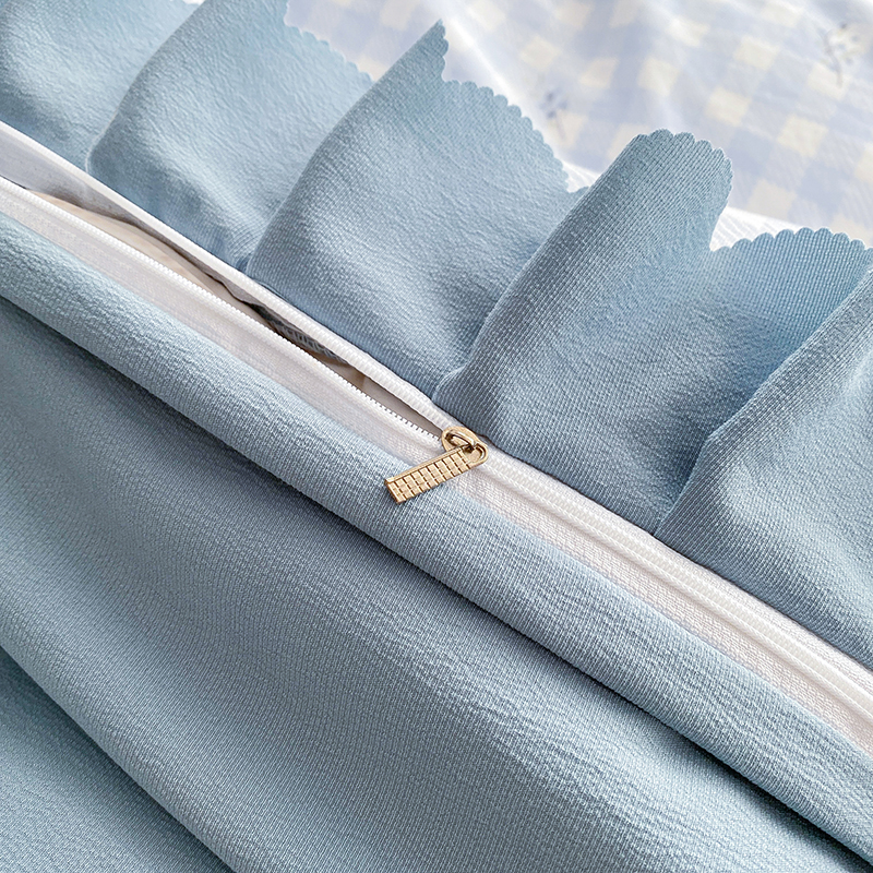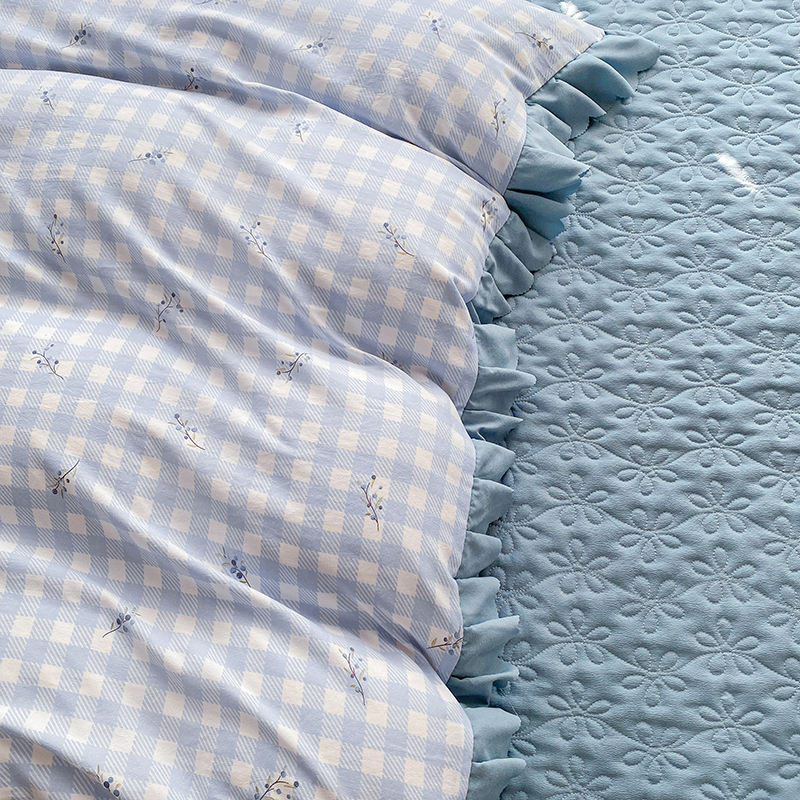 当前位置: 91家纺网 > 商品网购 > 床上用品 > 床盖 > 提花大世界 2025直播热款A类针织棉双层纱夹棉床盖床裙花边单件三件四件套 蓝色格调