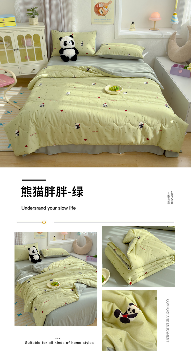 弗苓家纺 2025 A类有氧针织双层纱夏被四件套直播爆款 熊猫胖胖-绿