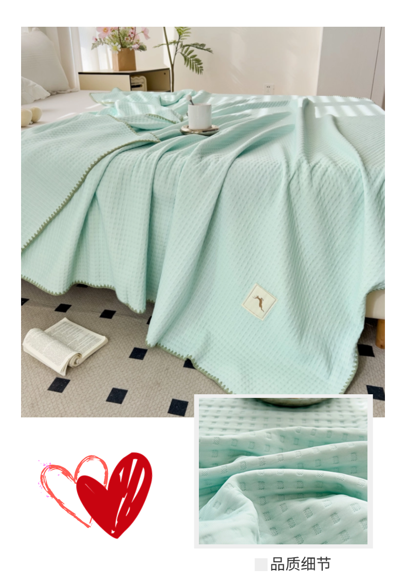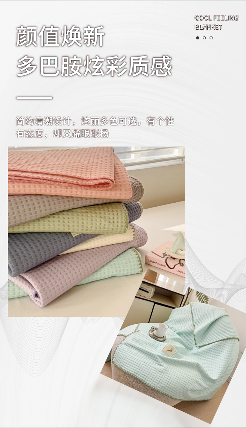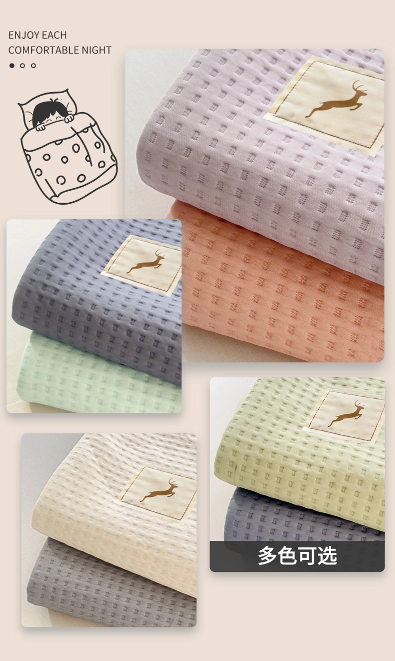 (总)十九色 2025新款全尺寸三角针盖毯夏被华夫格双面冷感夏被毯,淡绛红,海军蓝,海天蓝,幻影灰,抹茶绿,牵牛紫,象牙白