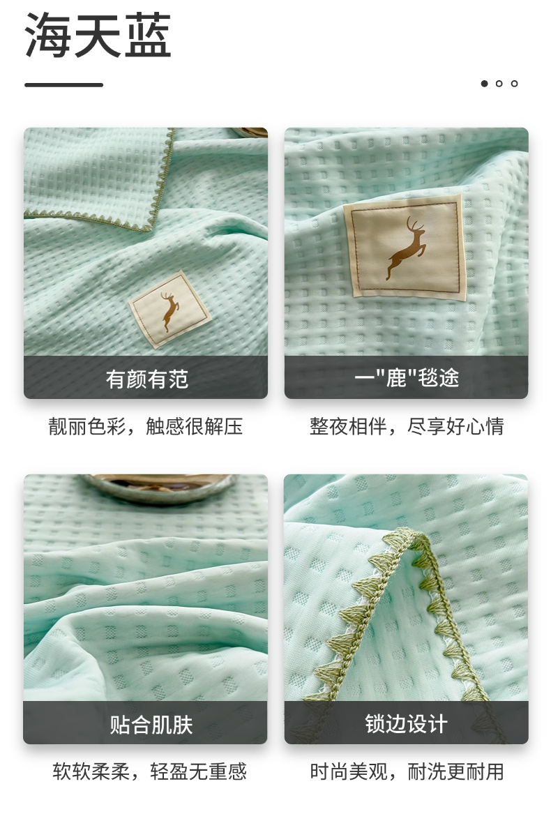 商品名称:十九色 2025新款全尺寸三角针盖毯夏被华夫格双面冷感夏被毯 海天蓝