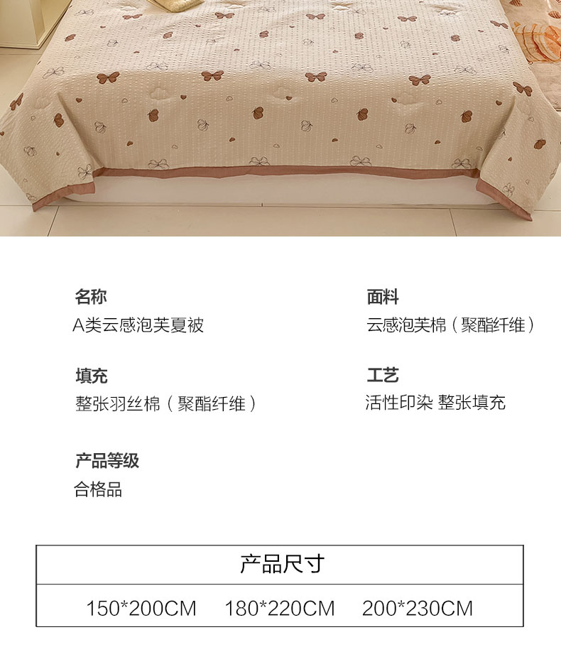 商品名称:鑫琪莱家纺 2025新款A类云感泡芙夏被蝶纷飞