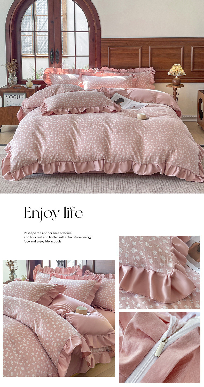 (总)锦格家纺 2025年新款全棉印花小清新花边四件套,千颂伊,繁音,月朵,紫苏